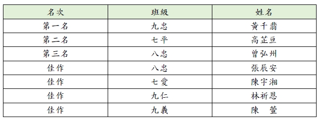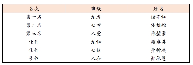 四、本次比賽經校內評選後,推選各項目前三名獲獎作品參加全市比賽。
