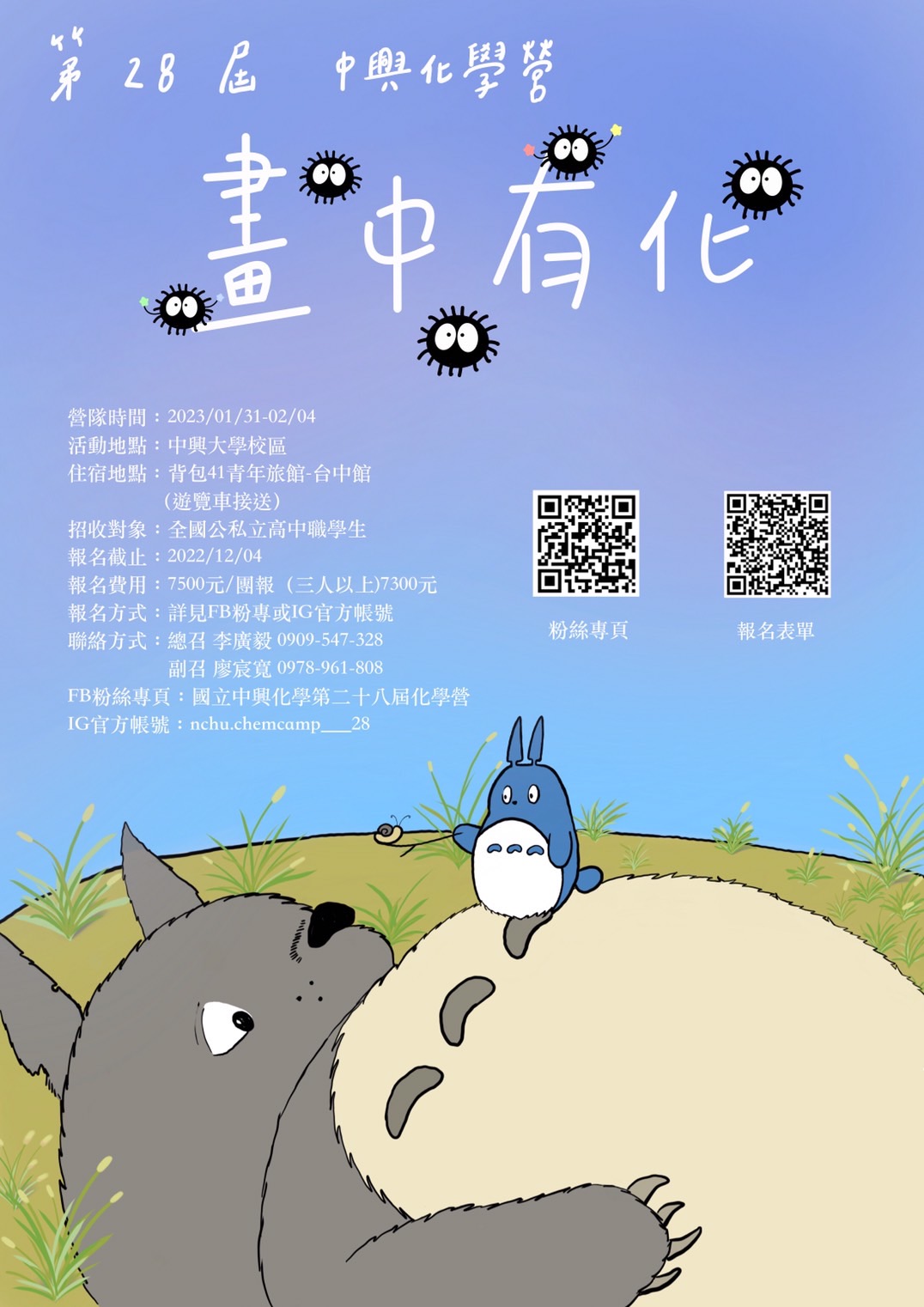 一、活動內容含系上教授化學專業領域演講、化學魔術表演、 實驗操作課程、名人演講及各項趣味活動,歡迎同學報名參加。