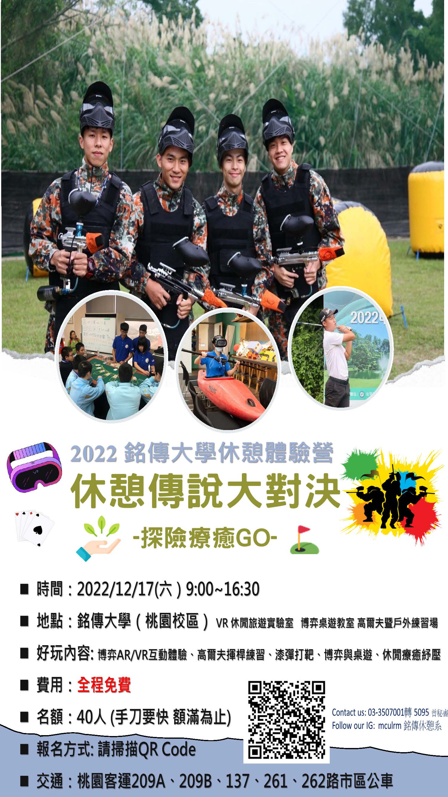 四、報名方式: 詳見附件-體驗營海報,請掃描 QR code 完成報名,報名額滿後,主辦單位會另行公告通知,名額有限,額滿截止。