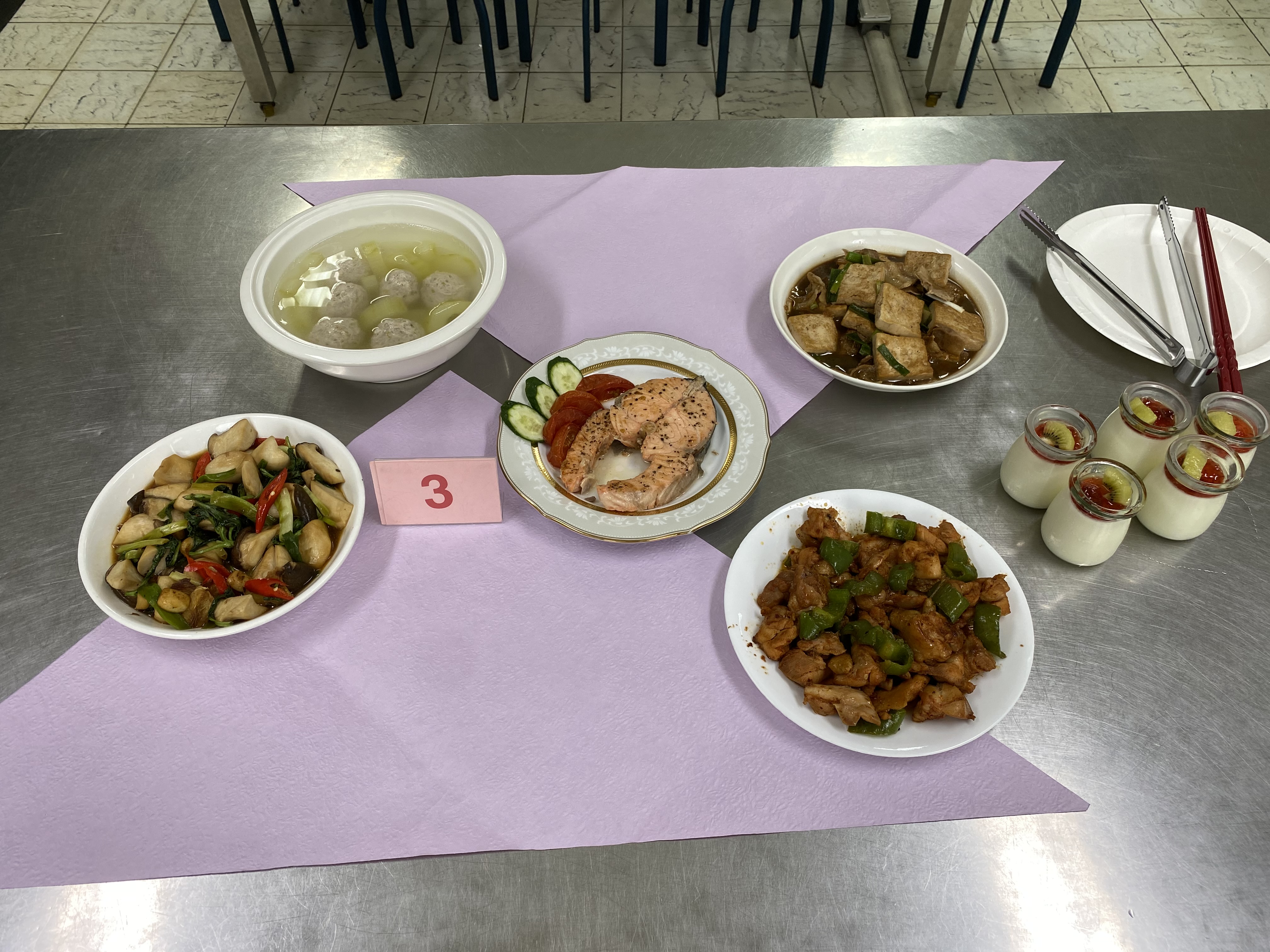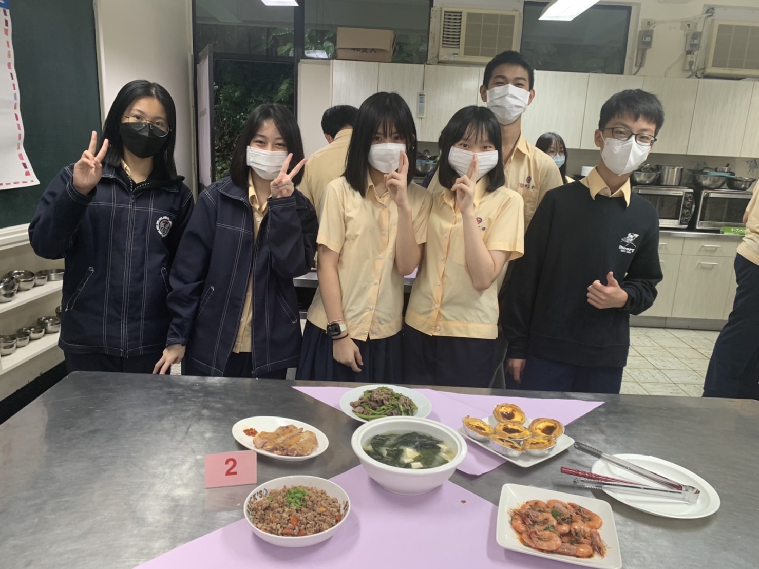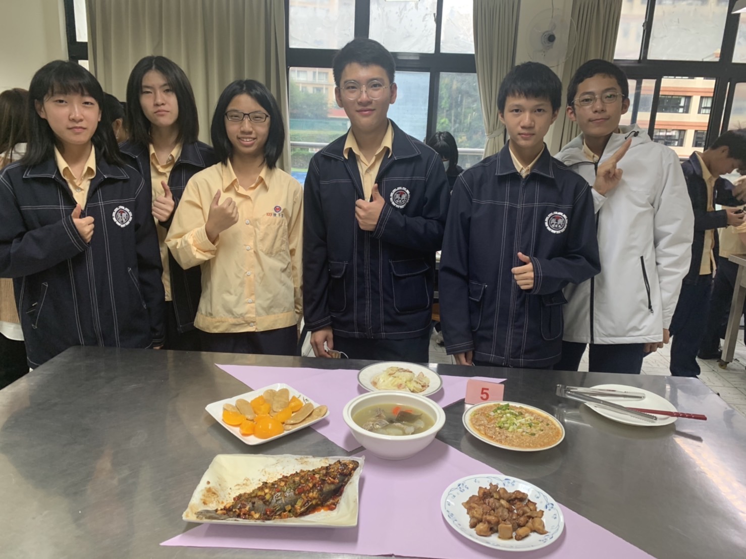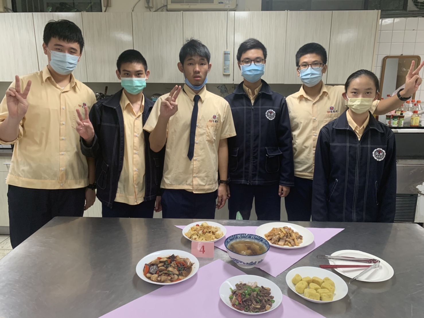 本校111學年度第1學期國中部九年級「廚藝大師」競賽,由教務處主辦,於111年12月8日假本校家政教室舉行。本項活動由韓京倫老師統籌與規劃,主要為增進學生家常料理製作與實務運用之能力,藉由基本烹飪技巧,激發學生團隊討論與合作之潛能,活動主題為「家宴」,四菜一湯一甜點的家常菜料理及飯後甜點,參賽隊伍競爭相當激烈,在擺盤創作及料理美味上都竭盡巧思,創意十足,並邀請校長、教務主任、總務主任、輔導主任、教學組長、劉姵希老師擔任評審,各組成績名次如下: