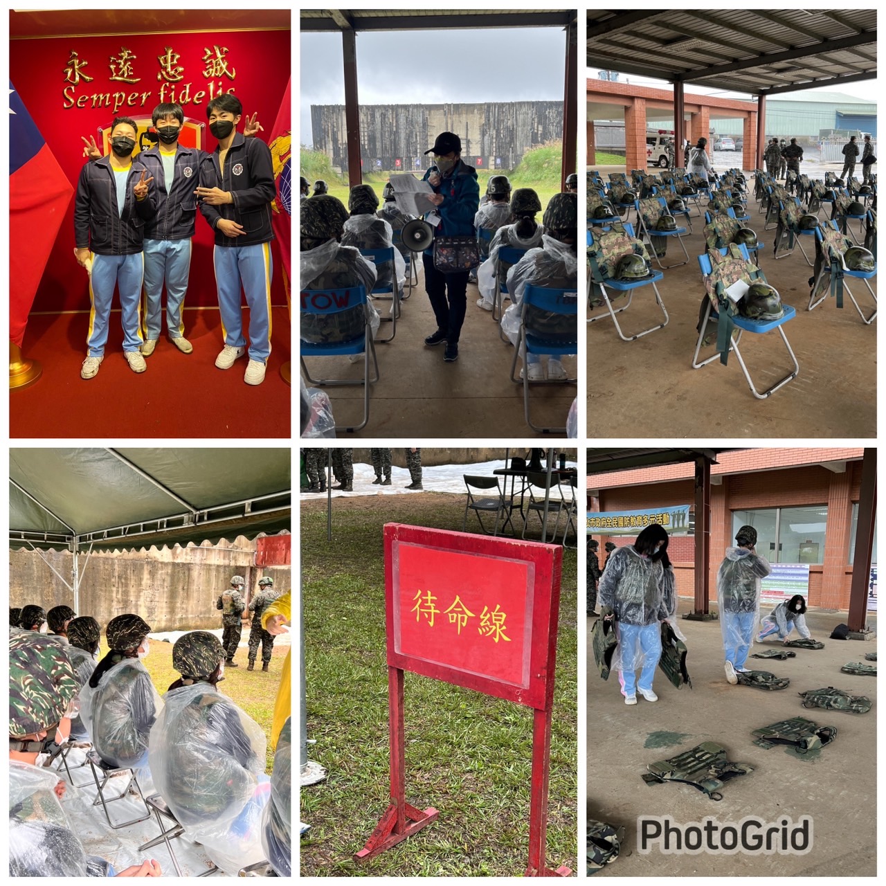 本校111學年度高中部二年級實彈射擊活動由學務處承辦,於111年12月12日(一)舉行;本次活動共計245名高二同學參加,當日上午7時30分於學校集合由柯文柔校長致詞提醒相關注意事項後,再由學務處雷遠郎主任、學務處相關同仁及高二各班導師率領於7時50分出發,並於上午9點20分抵達新北市林口大崗靶場。同學們抱著既緊張又興奮的心情穿上防彈背心、戴上鋼盔,在靶場安全人員的協助下,手持T91步槍,每人射擊5發彈藥,感受過實彈射擊的威力後,同學們均大呼過癮、回味無窮。本次射擊體驗活動結束後並安排高二同學們前往靶場附近之「海軍陸戰隊六六旅下湖營區」參訪;在營區中同學們認識國軍海軍陸戰隊之隊史文物,並親眼見識各式戰車、迫擊砲車、肩式火箭砲等軍事武器,還有海軍陸戰隊兩棲蛙人部隊赫赫有名的「天堂路」。半天活動過程平安順利結束後,於12時30分結束返回學校。