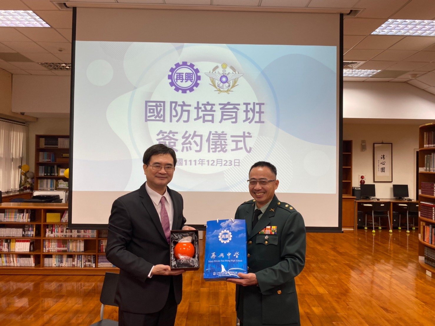 再興中學與國軍北部地區人才招募中心舉行「國防培育班」合作簽約儀式,由北部地區人才招募中心