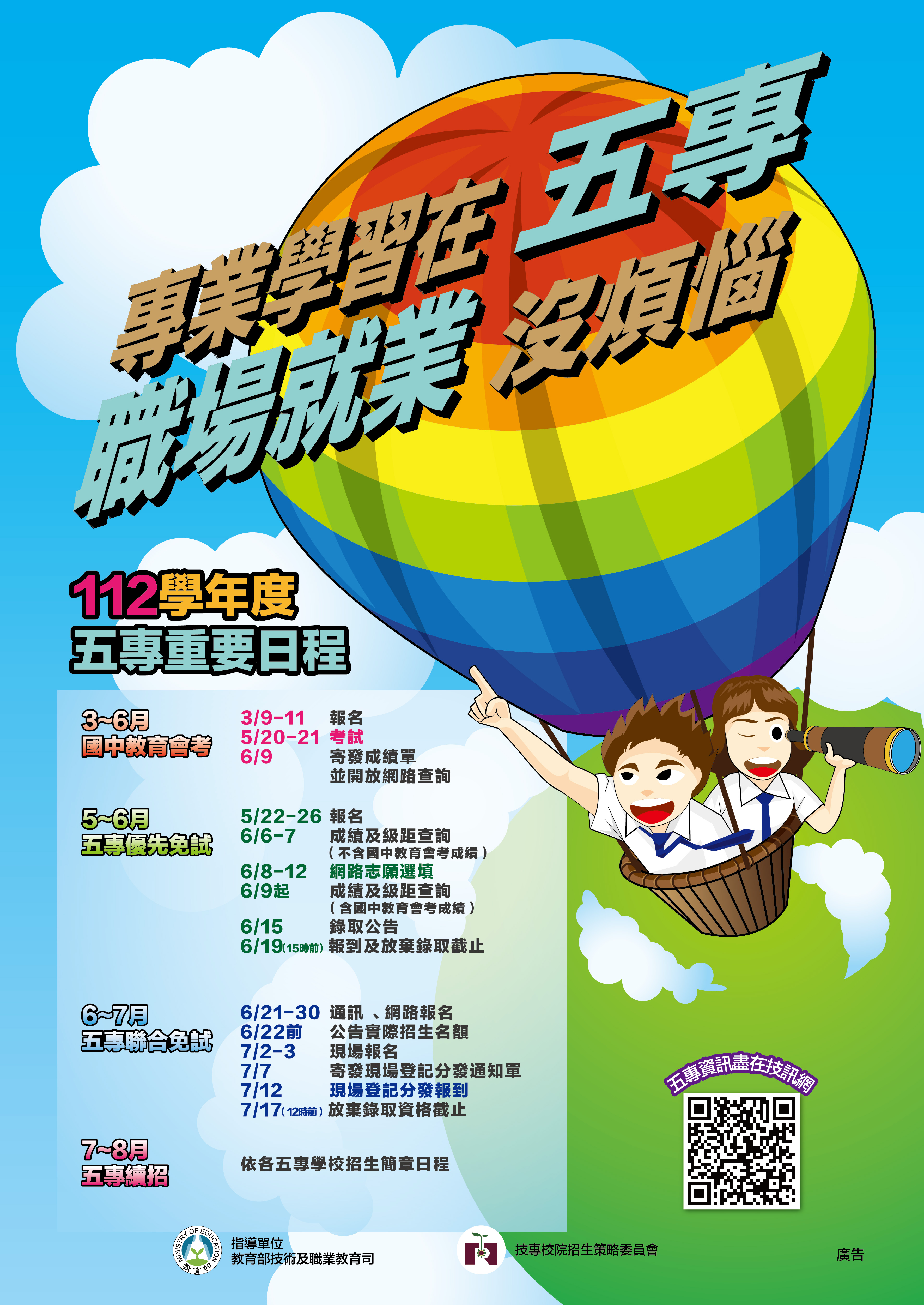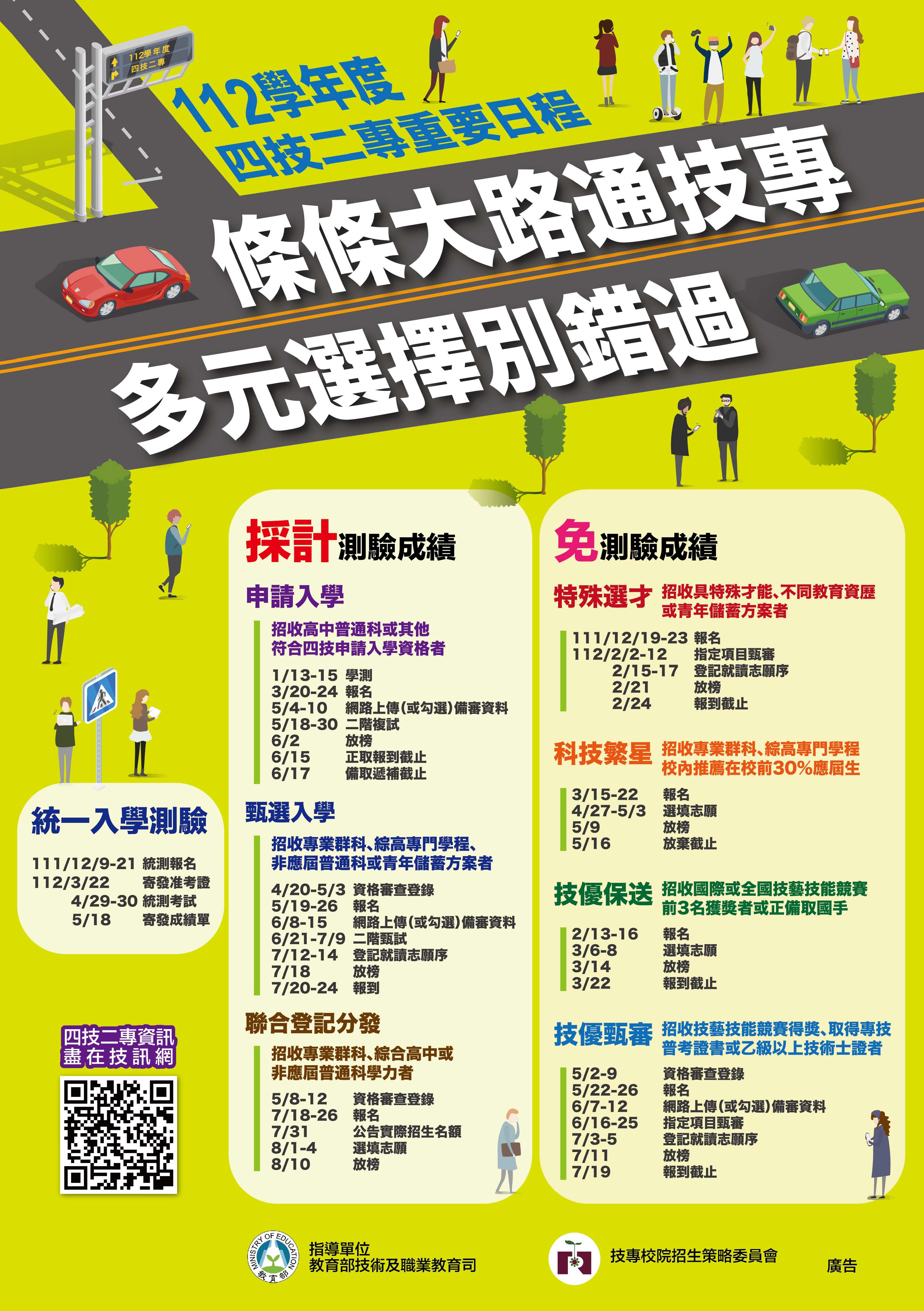 四、各入學管道詳細招生作業及日程若有調整,請以各招生主辦單位最新公告為準。