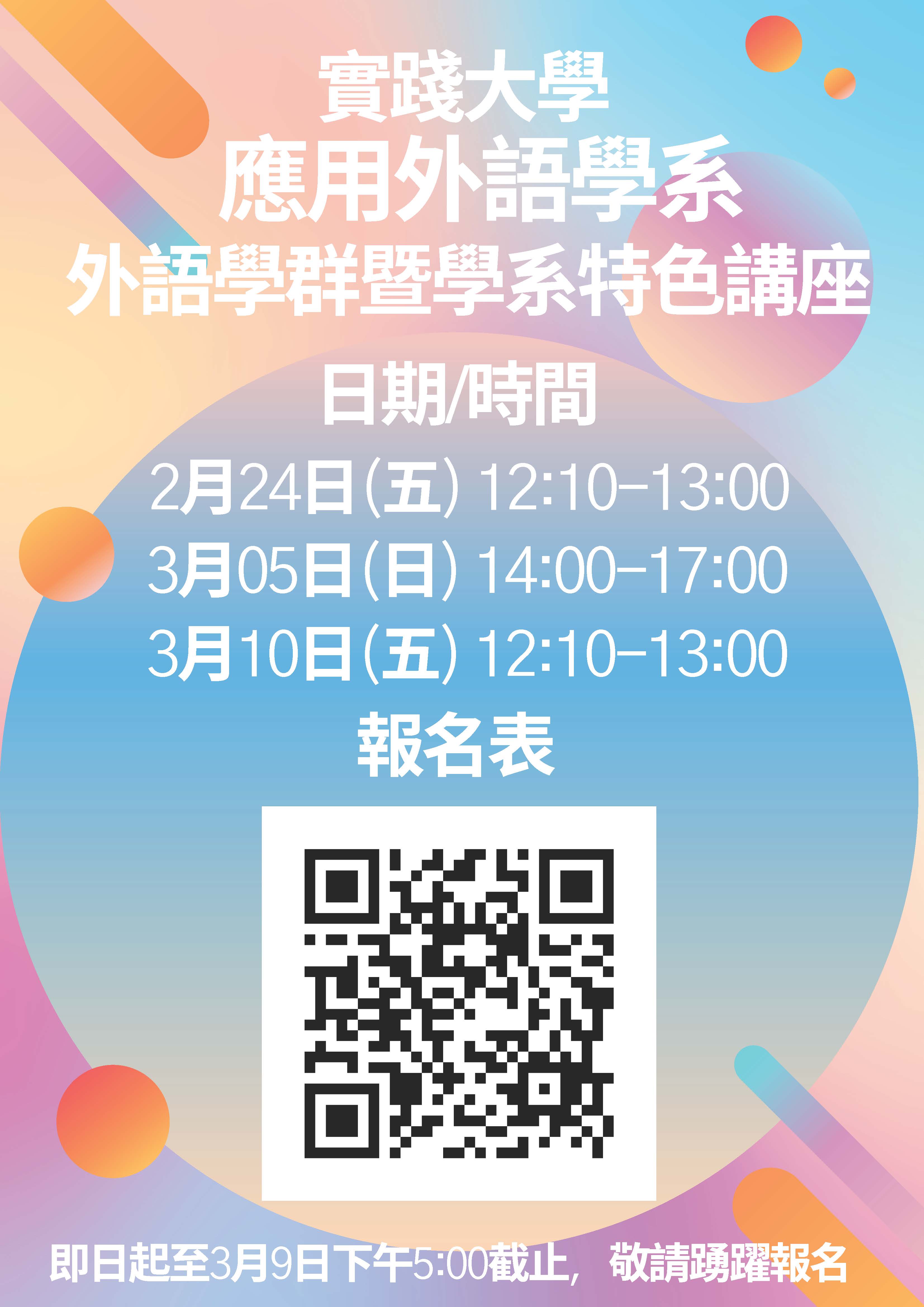 一、實踐大學應用外語學系辦理「外語學群暨學系特色講座」