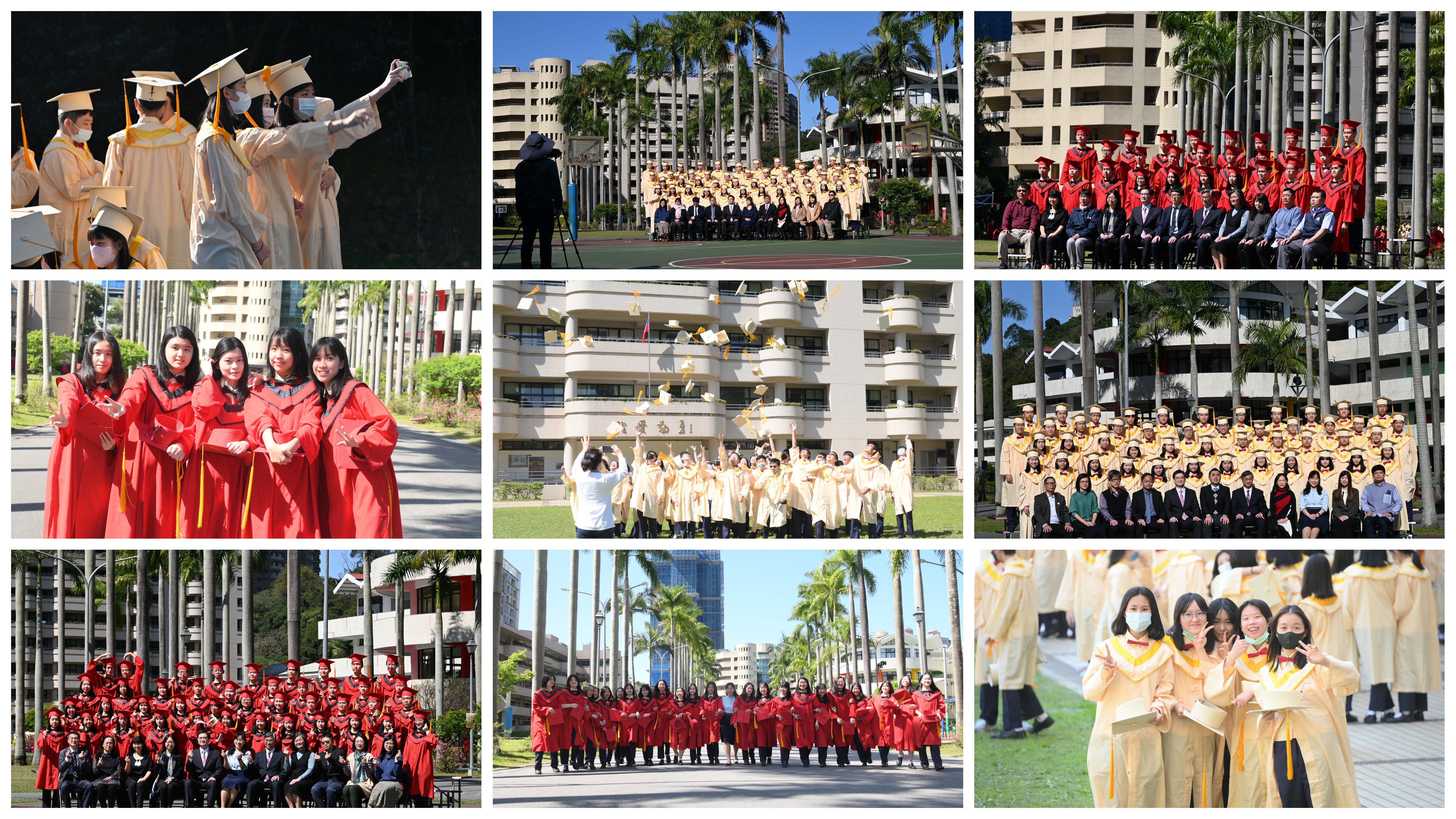 本校111學年度高中部三年級、國中部九年級應屆畢業生拍攝畢業團體照活動,由學務處主辦,112年 3 月6日於小學部籃球場拍攝。各畢業班同學穿著整齊的畢業禮服入鏡,隨著各種畢業活動的降臨,同學們也逐漸感受即將畢業的依依不捨之情。