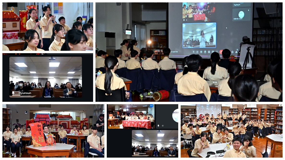 為使活動進行順暢,選修韓語的高一、二同學們利用彈性自主課程時間安排了2次彩排與1次預演,在3月3日進行第二次彩排時,邀請韓國城南外高羅老師上線加入會議室給予指導;到了活動前一天3月9日預演時,邀請本校柯校長、張副校長及教務陳主任蒞臨現場給予指導。3月10日早上正式上線進行交流活動,本校柯文柔校長、金老師及高一、二40位同學參與,城南外高則由新任崔賢珠校長及羅老師和51位同學上線;當畫面出現時,안녕하세요的聲音響起,大家紛紛在線上打招呼,並試著呼叫彼此LINE上的筆友……活動由二誠郭語庭及二勇林宥均主持開場,本校柯文柔校長致詞歡迎大家有機會多多在線上交流,更期待能早日恢復彼此先前互訪面對面交流活動,祝福城南外高校運昌隆;接著崔賢珠校長首先以中文「你好」和大家打招呼,接著以英文致詞提及她在7年前曾隨韓國教育團來我們學校參訪,對本校印象深刻也期待能早日恢復兩校互訪交流活動。