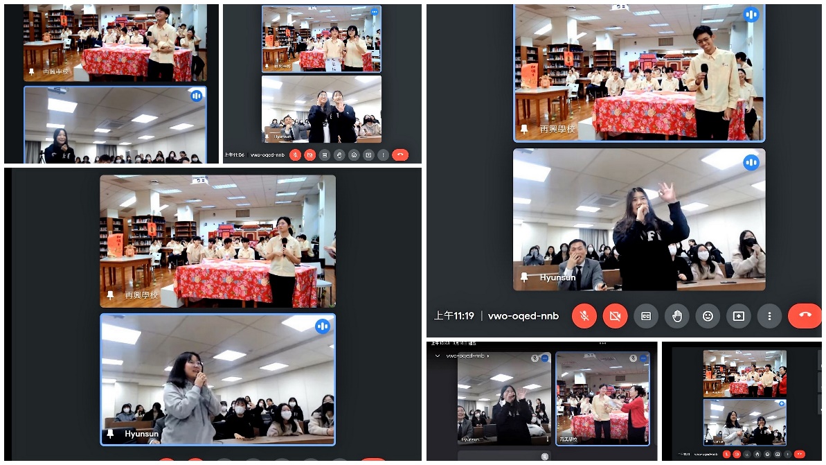 於2019年5月24日韓國城南外高師生七度蒞臨本校參訪後因COVID-19肆虐之故,二校暫停一切交流,直至2020年10月於該校羅老師提議下,二校學生透過社群媒體進行一對一個別聯繫;自111學年起,除了仍然維持學生間1-1個別的聯繫外,為使線上的交流活動更臻多元,便積極安排雙方進行線上師生團體交流、一起上課,原擬定於上/下學期各進行一次,後因該校校舍修繕之故,提前放寒假,故延後至三月該校開學後進行第一次線上交流。