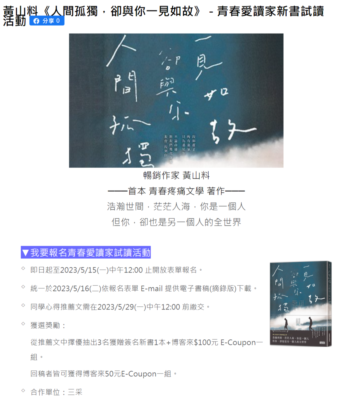 黃山料 最孤獨、最疼痛之青春小說代表作