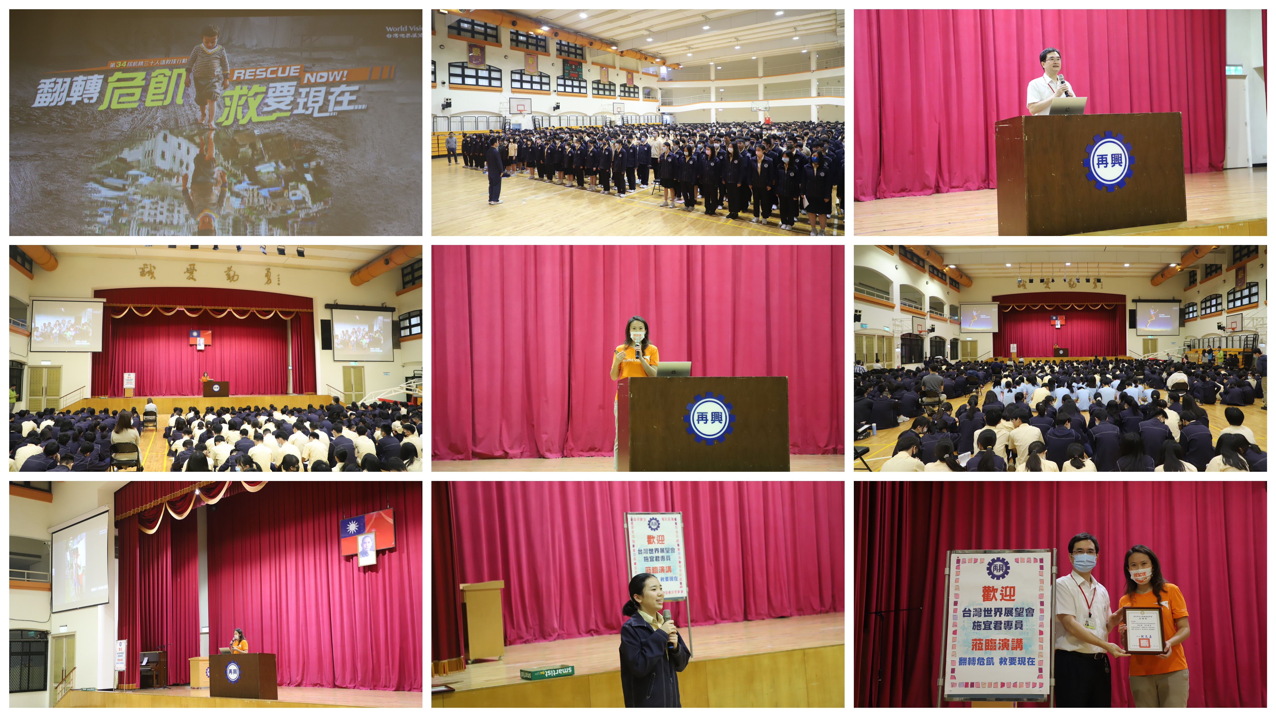 112年5月10日本次週會邀請台灣世界展望會施宜君資深專員,演講主題【翻轉危飢 救要現在】。首先講師藉由實際狀況,帶領學生體驗、感受需要幫助孩童的現況,在一個個真實故事下,從不同面向更深入的關注「糧食短缺」問題,也透過影片傳達糧荒對兒童生命的極大影響,透過世界展望會在各地號召一起響應飢餓三十人道救援,用行動喚起大家的關注,拉近我們與世界的距離。最後施專員希望同學能學習成為手心向下與人分享的人,並邀請更多的親朋好友一同參與台灣展望會救援活動,謝謝大家。
