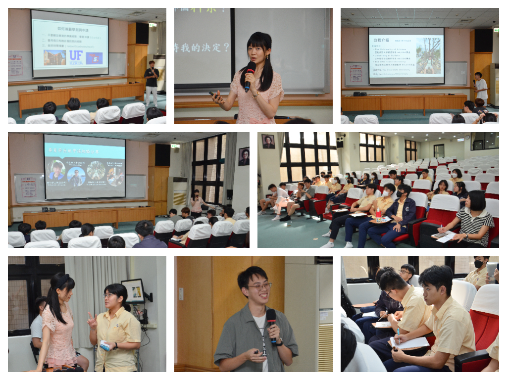 本校於8月4日舉辦高三留美說明會,由研發中心李秉容主任主講,開場介紹留學申請的完整流程與相關資訊,協助有志申請海外大學的學生,做好心態的準備與現況分析,並及早開始進行規劃與籌備,以兼顧國內外升學機會。說明會後半場邀請四位優秀的畢業校友來向學弟妹們分享留學申請的心路歷程,今年畢業的劉子齊學長分享如何兼顧國內學測與國外大學申請,並指導學弟妹使用Excel表格建立申請資料夾,有系統地掌握各項作業的內容與日程。辛定遠學長提供選校選系的資料蒐集方法,從多個面向去找到適合自己的學校,同時傳授自傳的寫作技巧與相關資源。周祐恩、劉嘉祐學長則分享國外大學獎學金的申請秘訣與國外生活的甘苦談。會後學弟妹們踴躍到台前發問,並感謝學長的經驗傳承,讓即將升上高三的他們更有方向感。希望透過本次說明會,能讓欲申請海外大學的學生抓緊時間,贏在起跑點。