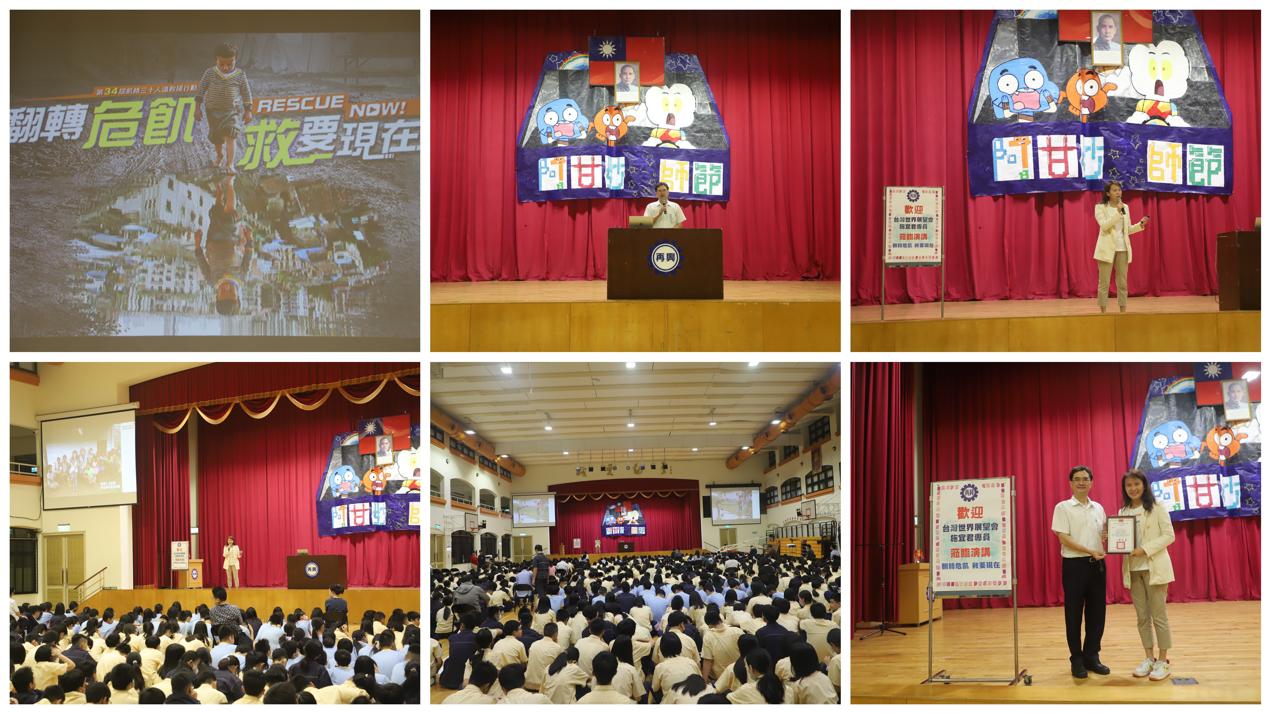 112年10月11日本次週會邀請台灣世界展望會施宜君資深專員,演講主題【翻轉危飢 救要現在】。首先講師藉由實際狀況,帶領學生體驗、感受需要幫助孩童的現況,在一個個真實故事下,從不同面向更深入的關注「糧食短缺」問題,也透過影片傳達糧荒對兒童生命的極大影響,透過世界展望會在各地號召一起響應飢餓三十人道救援,用行動喚起大家的關注,拉近我們與世界的距離。最後施專員希望同學能學習成為手心向下與人分享的人,並邀請更多的親朋好友一同參與台灣展望會救援活動,謝謝大家。