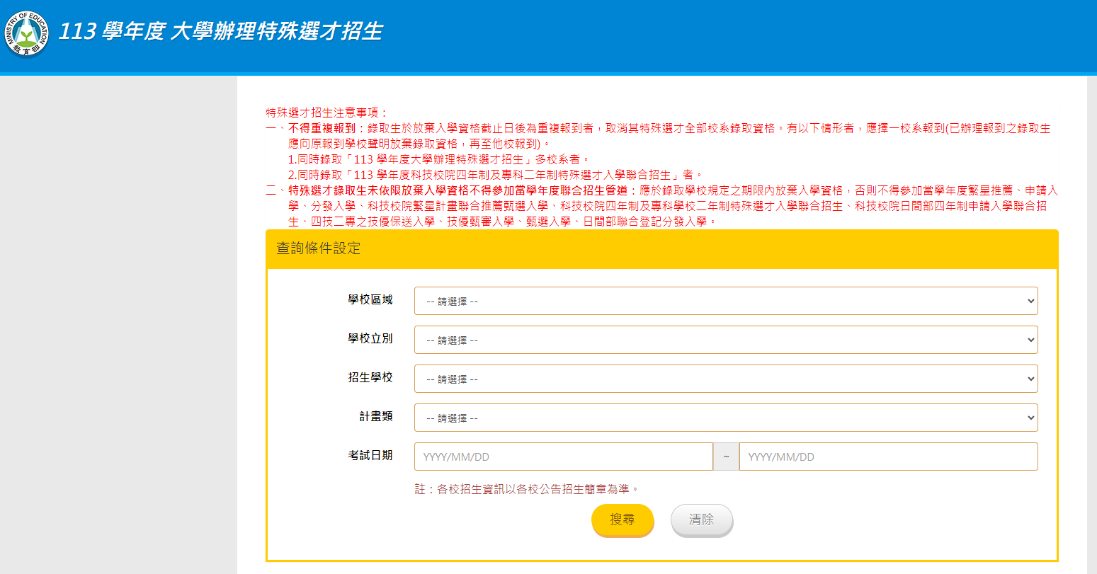 一、113特殊選才招生資訊