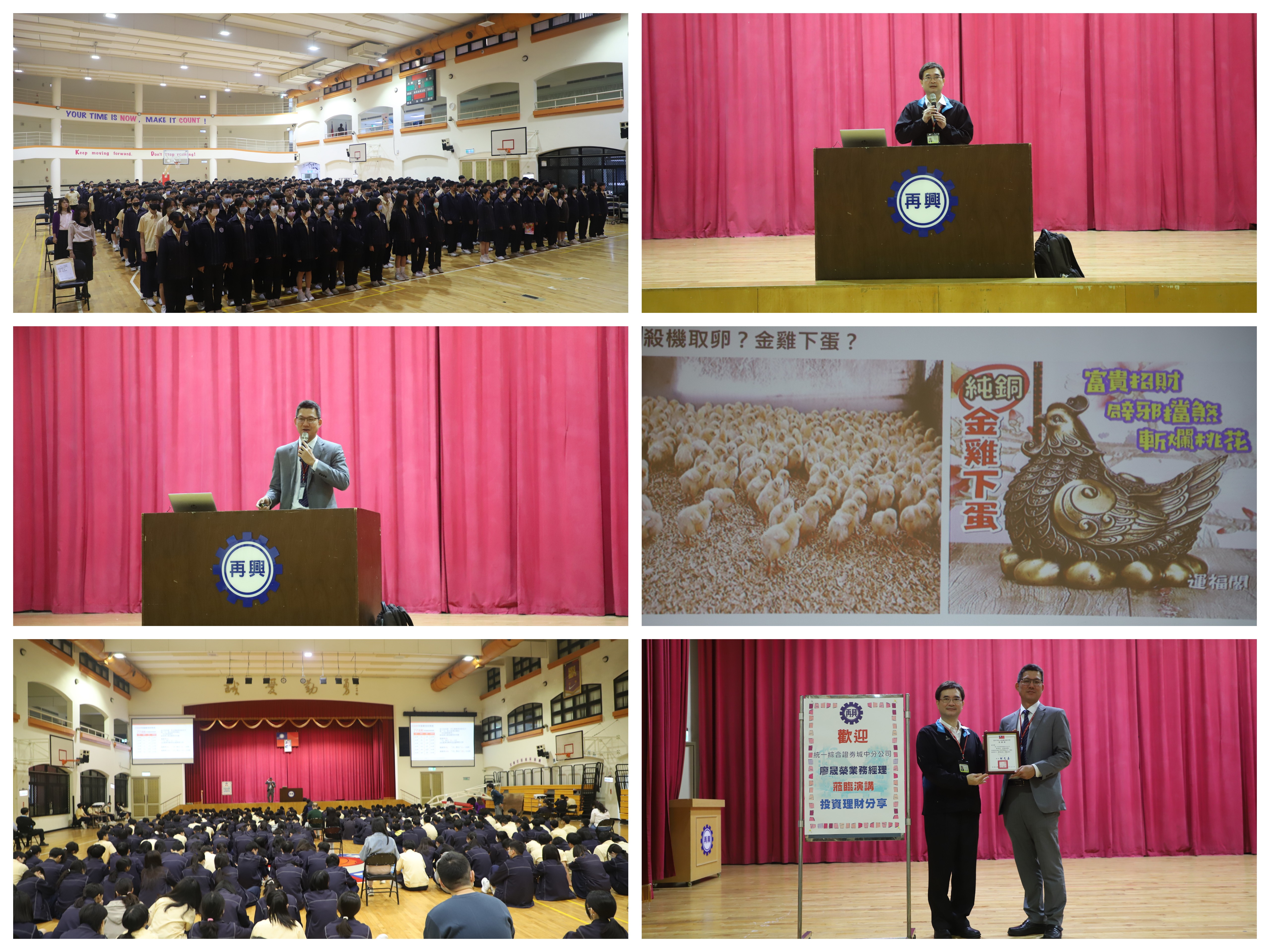 112年11月29日本次週會邀請統一證卷廖晟榮經理,演講主題【聰明理財富足人生】。首先,廖經理一上台便以「理財的用意」問題,給學子簡單的回應:每個階段,理財課題大不同,若不能擅於投資,我們便很難維持自己理想中的生活,反之若能提早了解、規劃建立正確的理財概念,相信會更能實現財富自由,簡短的一節課分享,嘉惠學子良多。