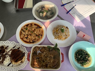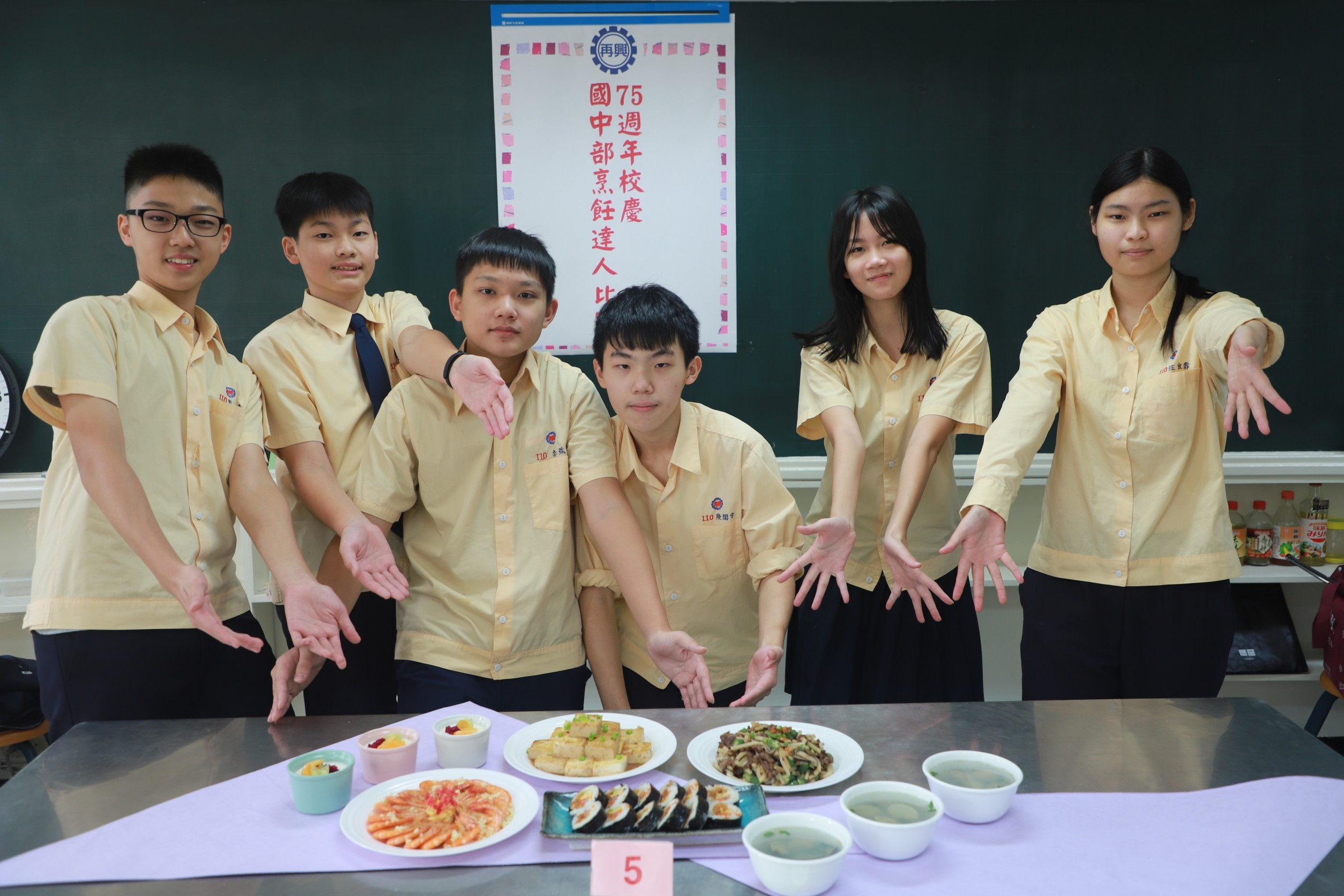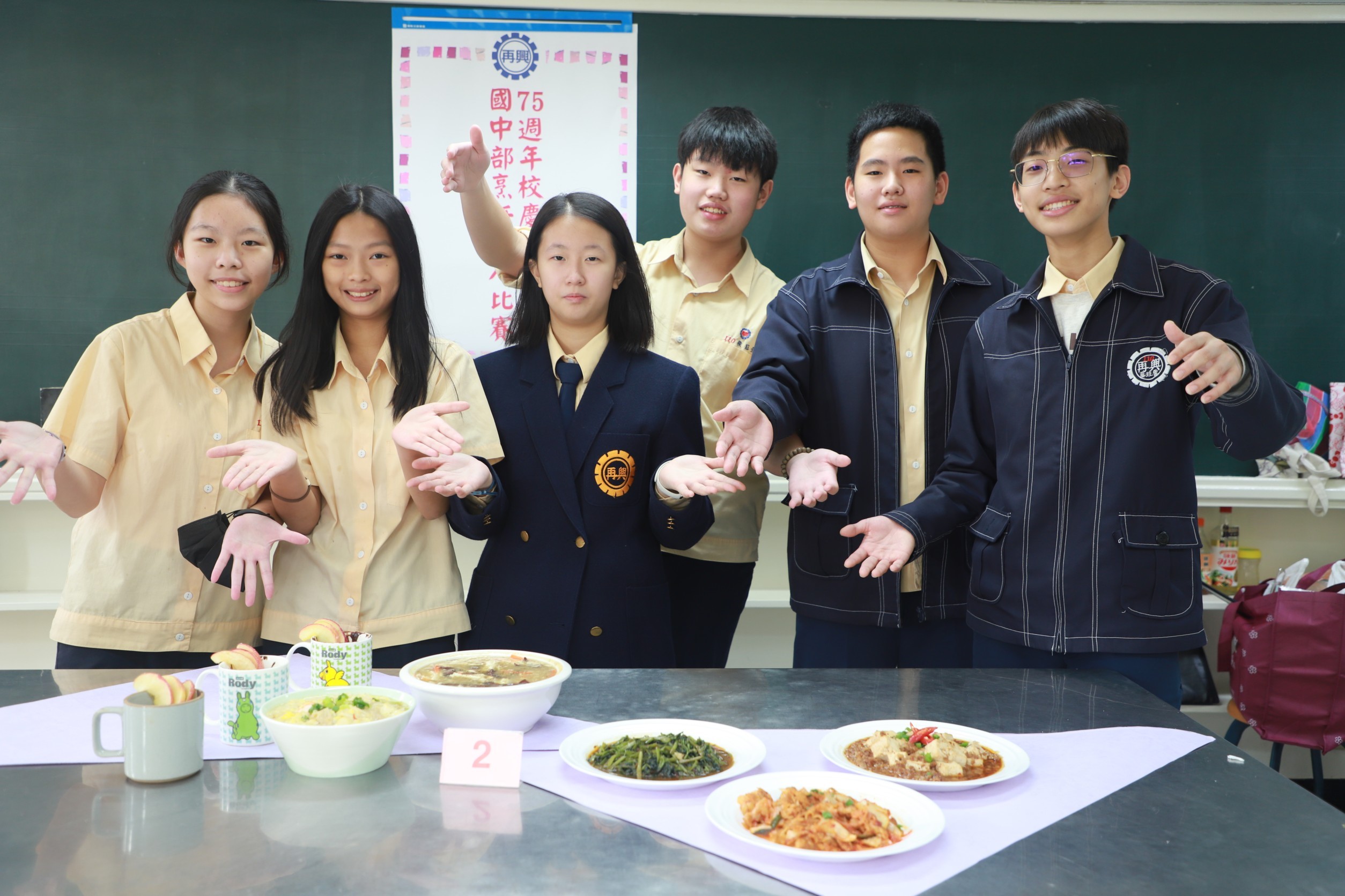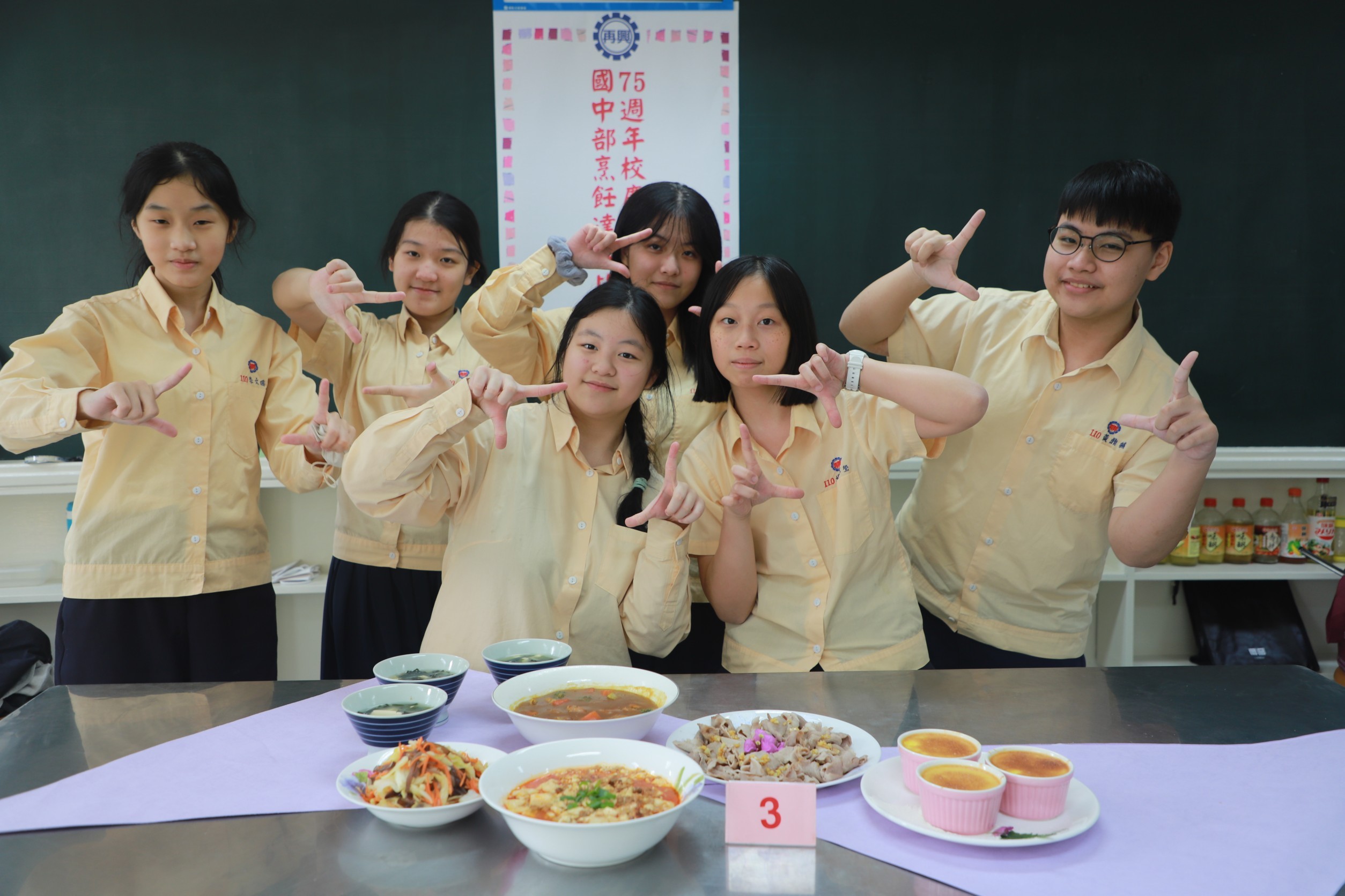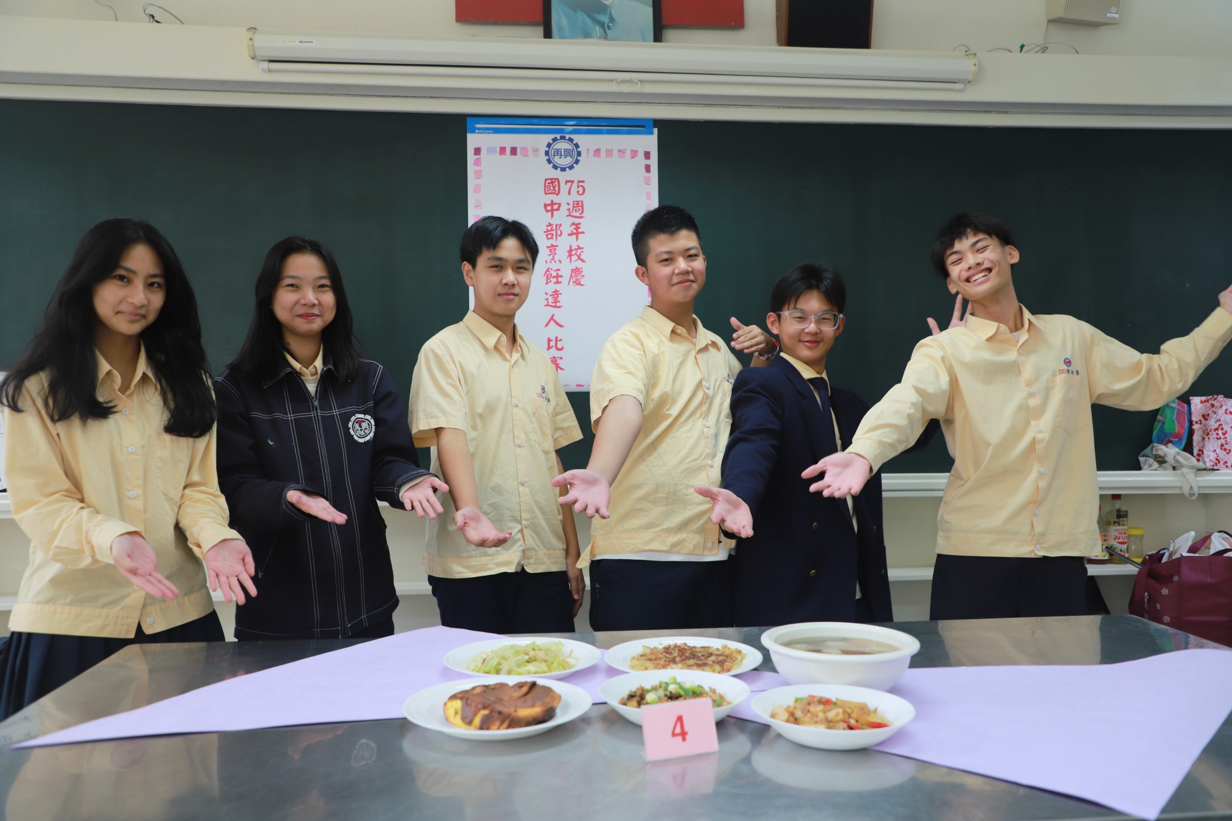 本校112學年度第1學期國中部九年級「烹飪達人」競賽,由教務處主辦,於112年12月7日假本校家政教室舉行。本項活動由韓京倫老師統籌與規劃,主要為增進學生家常料理製作與實務運用之能力,藉由基本烹飪技巧,激發學生團隊討論與合作之潛能,活動主題為「家宴」,四菜一湯一甜點的家常菜料理及飯後甜點,參賽隊伍競爭相當激烈,在擺盤創作及料理美味上都竭盡巧思,創意十足,並邀請校長、教務主任、總務主任、輔導主任、劉姵希老師擔任評審,各組成績名次如下: