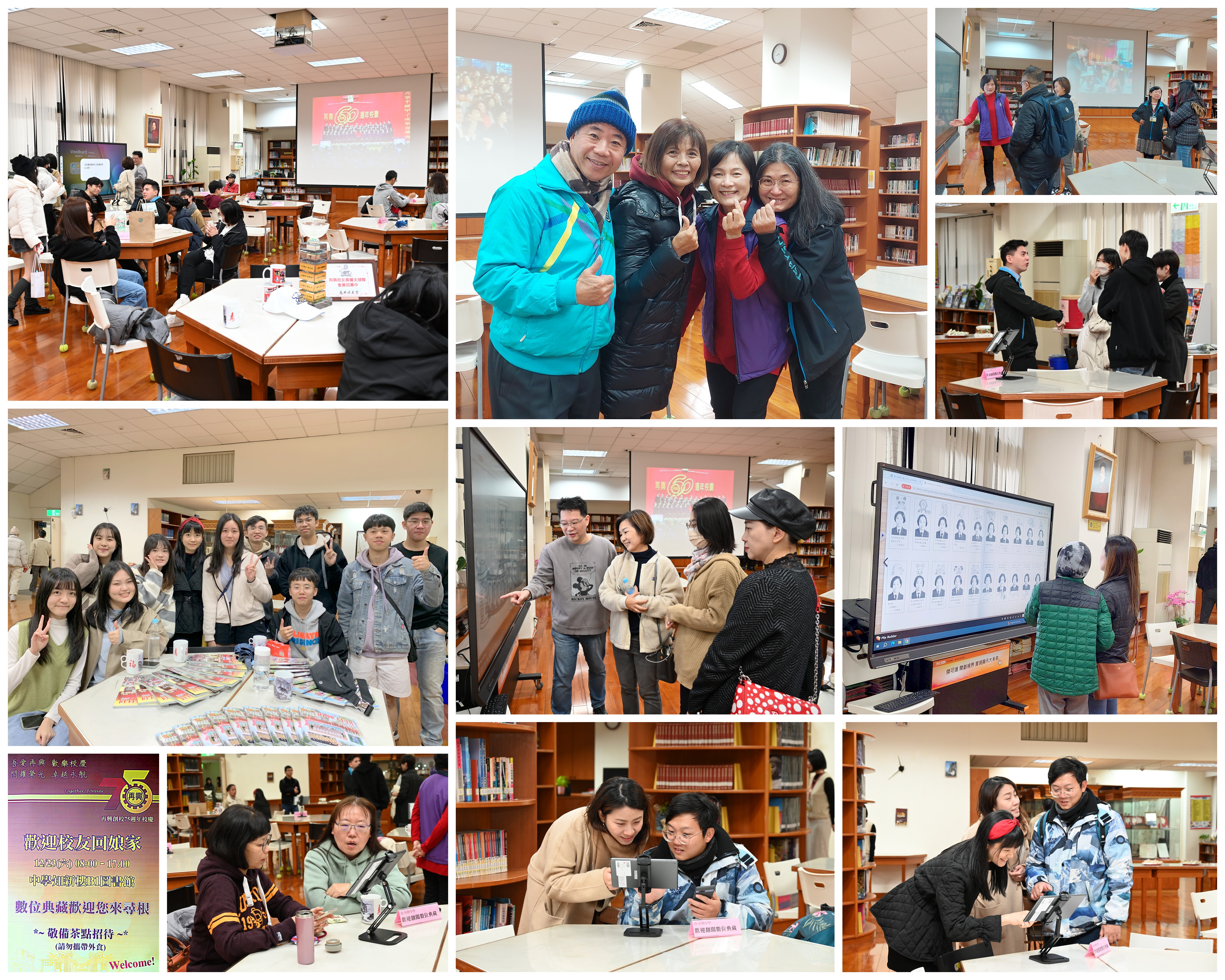 12月23日適逢75周年創校校慶,本校特別規劃在秀榮樓B1圖書館舉辦了校友回娘家的全日活動,現場提供茶水,也準備了大觸控電視、投影螢幕與數台平板,供校友們閱覽學校豐富的線上數位典藏資源。透過數位科技的輔助,校友們可以回顧學校歷年來的大事紀,重溫過去的點點滴滴,深刻感受到學校的成長與變遷。同時,也能輕鬆查找當年的畢業紀念冊與投稿校刊的作品,重溫自己在校時的回憶,細細品味那段青蔥歲月。
