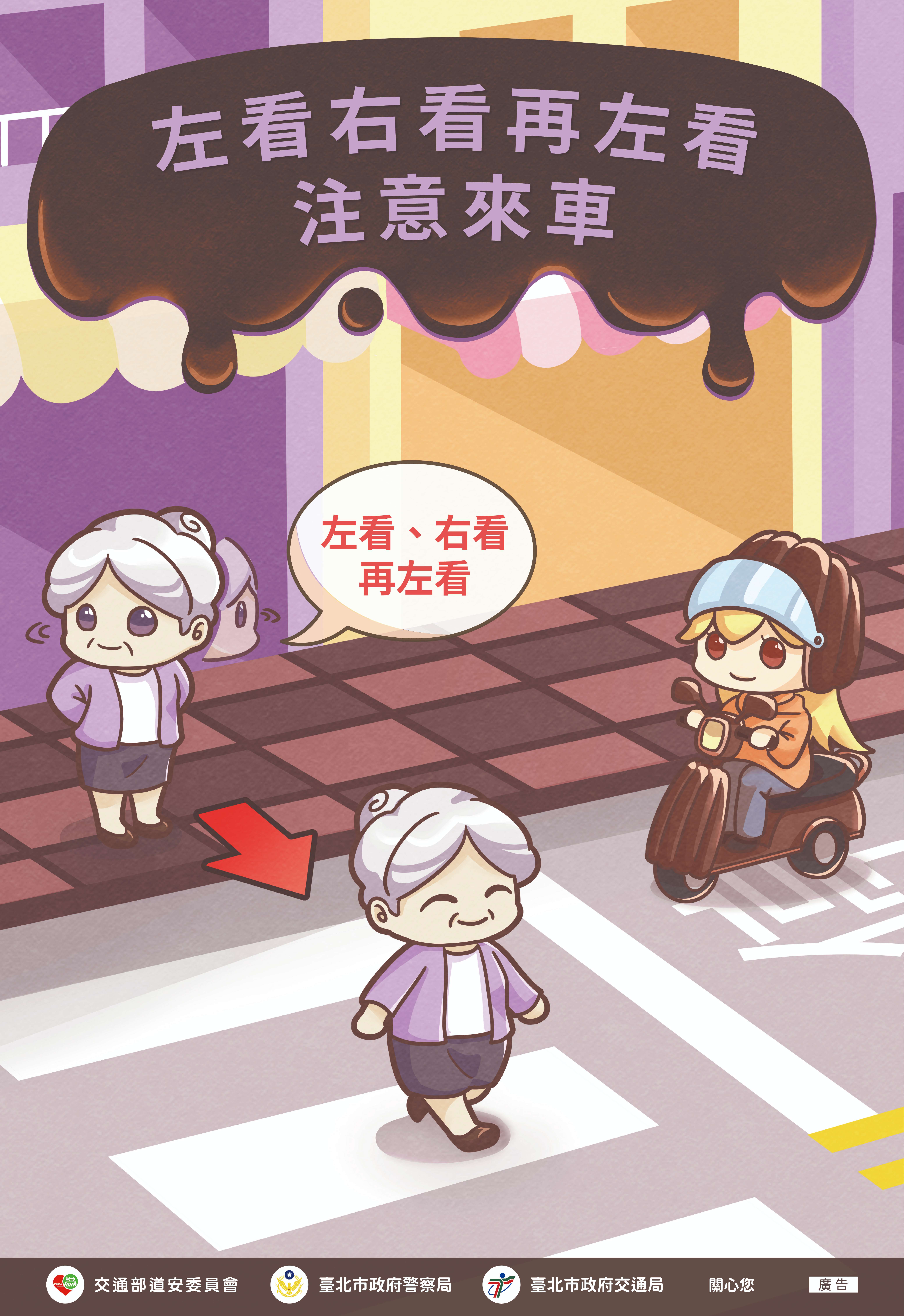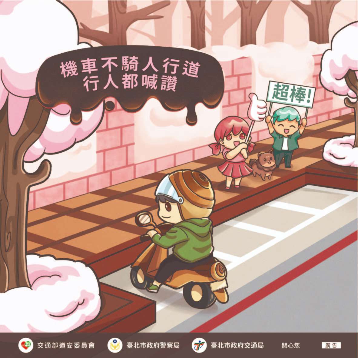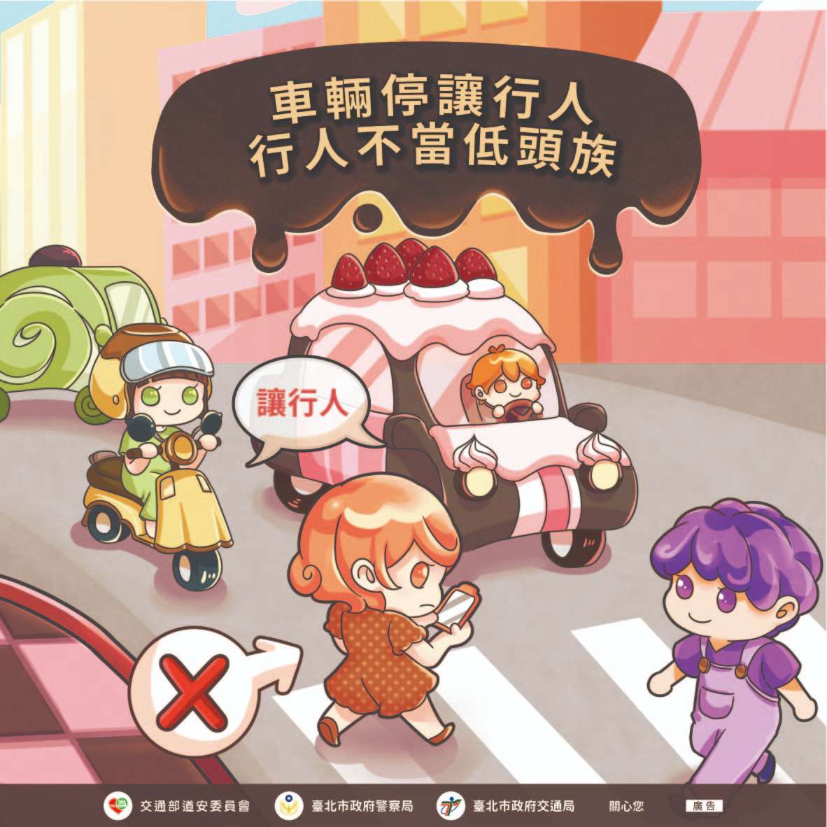(二)相關交通安全宣導圖片及說明文字如下,將宣導文字,每月以電子看板、跑馬燈或搭配海報電子檔透過網路、社群媒體等管道進行推播宣導,以達成多元宣導目標: