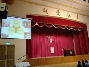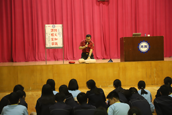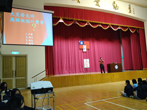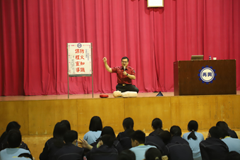 本次講座特別邀請臺北市消防局第一大隊寶橋分隊的陳信宏先生蒞校,講解防火知識及面對火災的應變要領,以及示範CPR+AED的操作步驟。