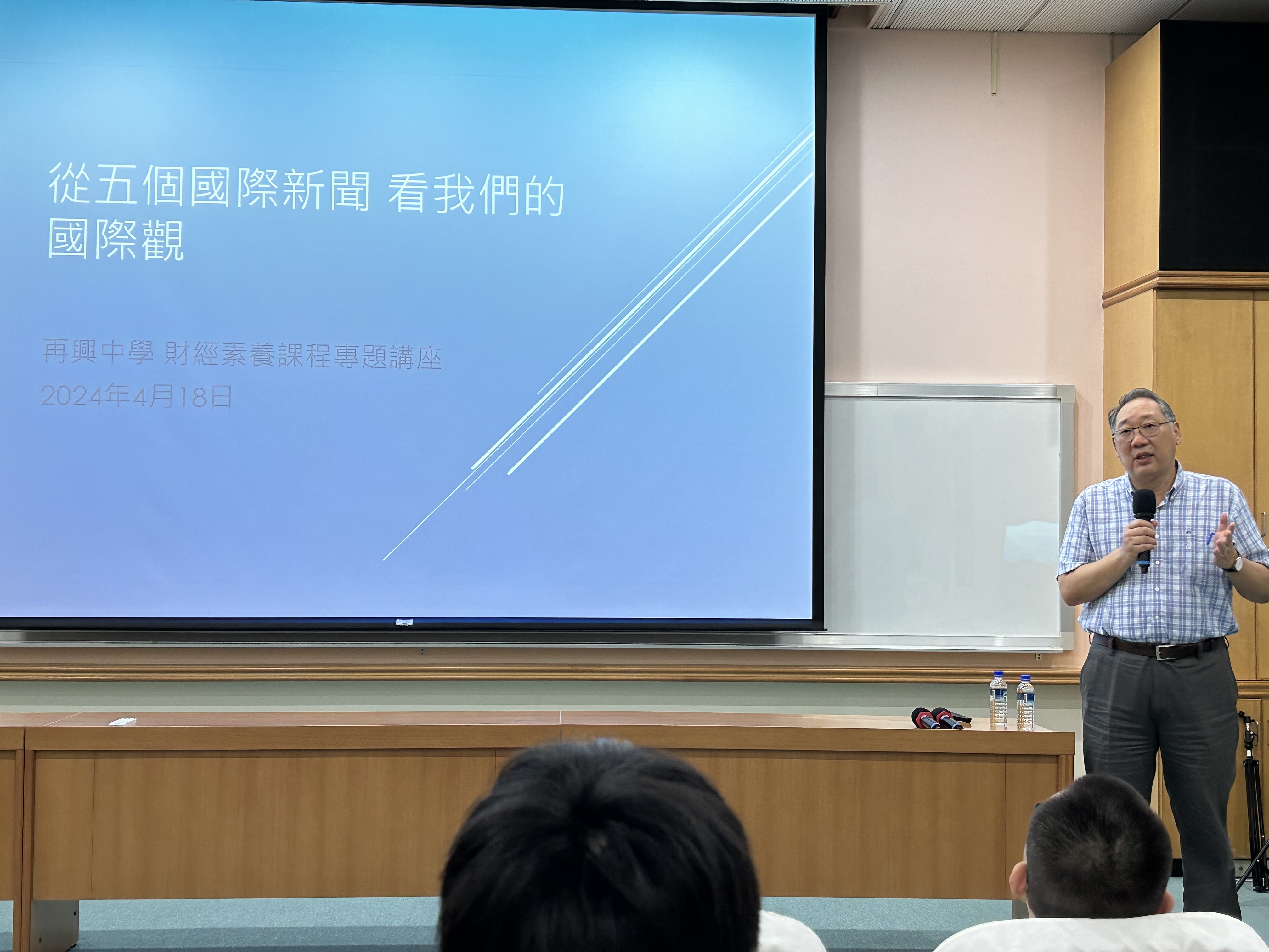 4月18日的財經素養課程專題講座邀請《聯合報》副總編輯郭崇倫老師以「從五個國際新聞 : 看我們的國際觀」為題,討論北韓的核武危機、東海與南海的主權爭議、烏俄戰爭到以哈戰爭與近幾年的中美關係。透過郭老師的演講我們也開啟了一趟啟發國際視野的旅程。