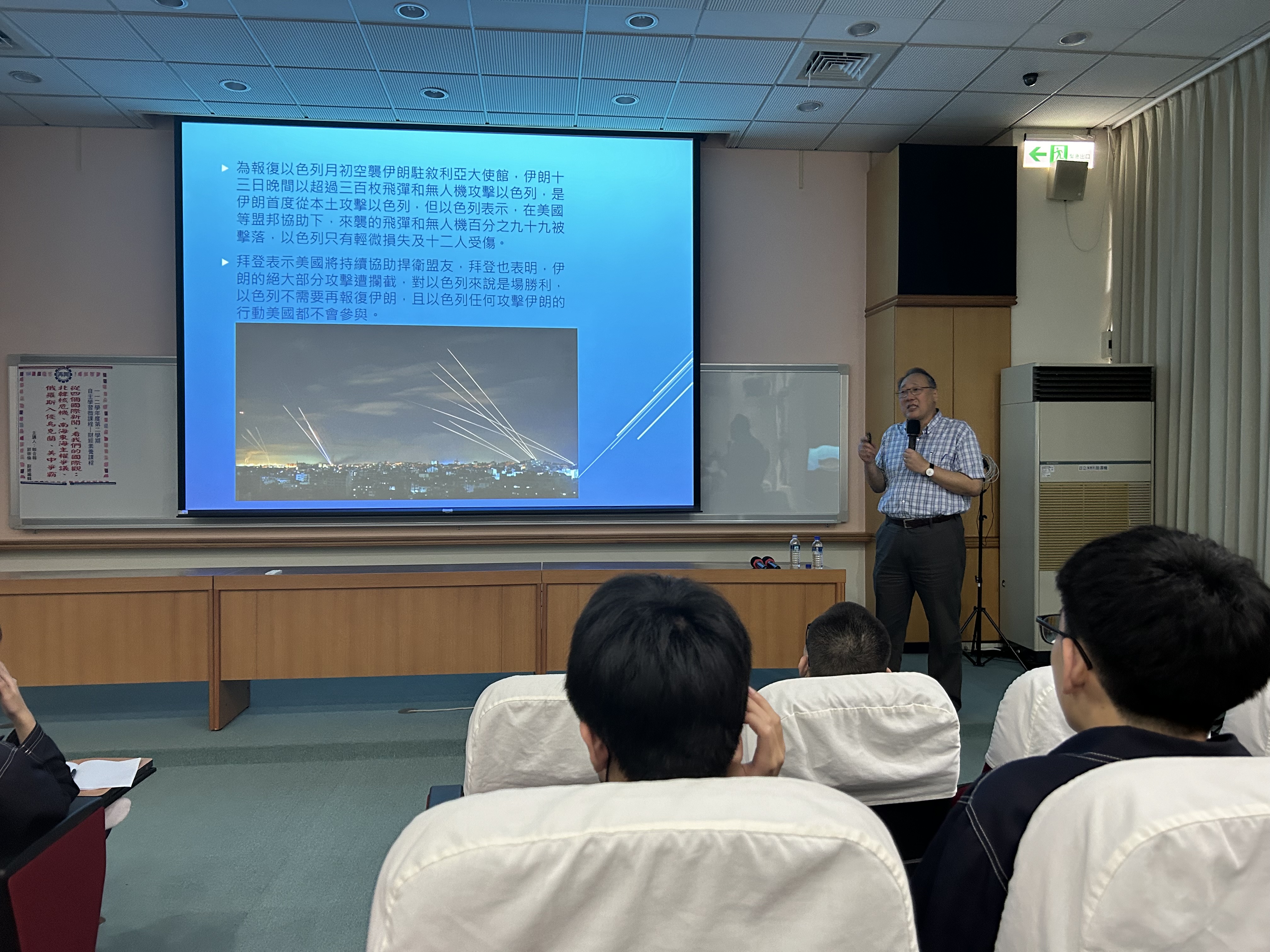 2023年10月以哈戰爭開打,周圍受到伊朗暗中支持的武裝團體也相繼攻擊以色列。今年 4月1日以色列襲擊伊朗駐敘利亞首都大馬士革的大使館,13日伊朗進行報復行動,發射飛彈與無人機空襲以色列。目前美國在立場上傾向於以色列,因此以色列的行動也影響著美國總統的選情,現今各界也希望以色列不要再回擊。不過在本講座舉辦的隔日(4月19日)以色列對於伊朗的空襲做出了報復,襲擊了伊朗中部與敘利亞南部的城鎮。截至21日止以色列、伊朗、美國皆未做出任何回應。