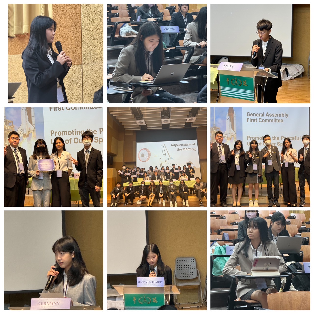 在兩天共四個議程的會議中,學生勇於運用課程中所習得的國際法與知識去表達所屬的國家立場,並思索解決方案。講師鼓勵同學們利用課餘時間參與校外會議,汲取經驗、充實自己。