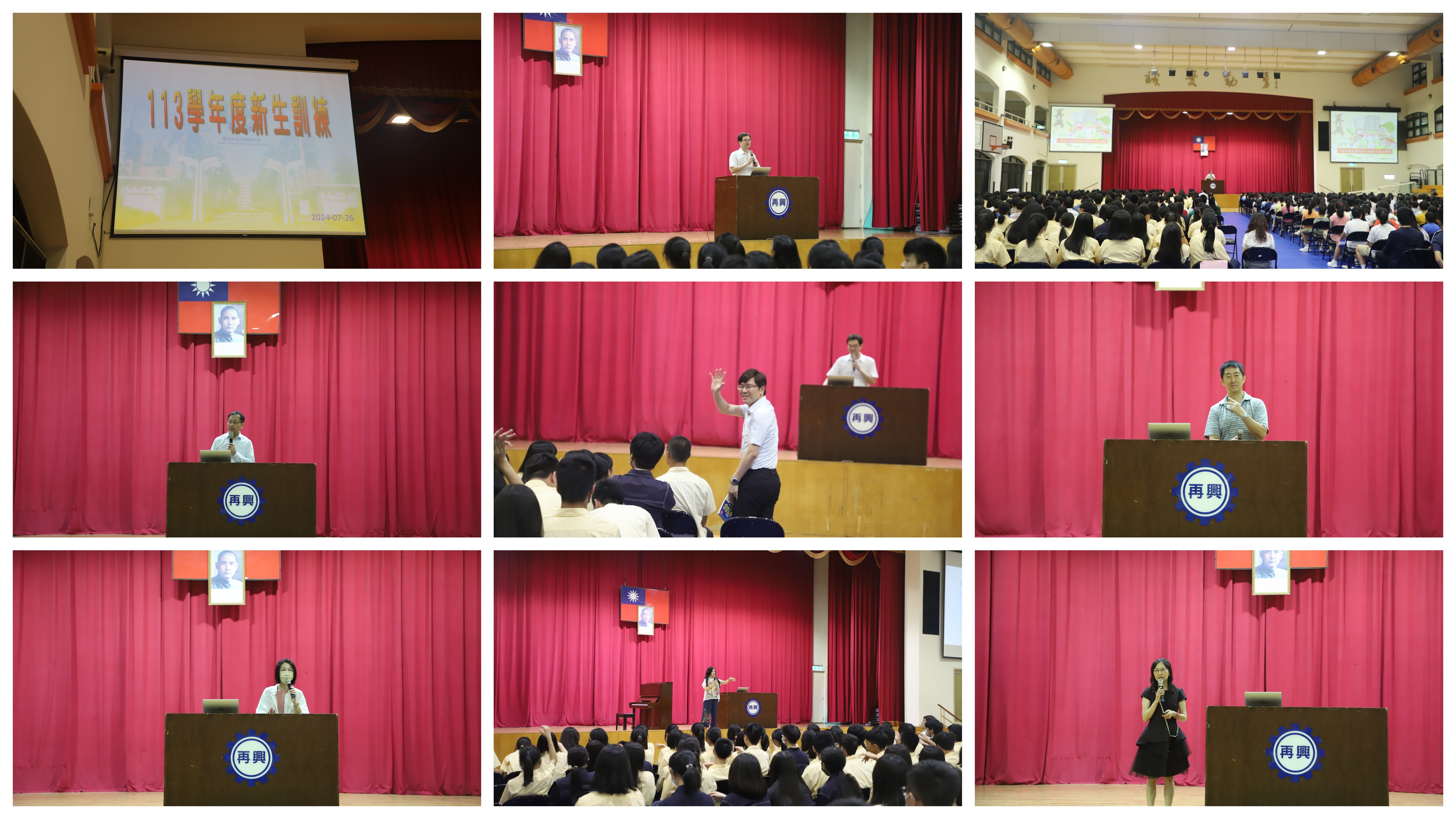 為幫助高一及七年級新生盡快融入再興中學的生活,並知曉各處室職掌、規章,本校學務處特於7月26日(五)假知新樓B3體育館舉辦113學年度新生訓練。首先,由柯校長介紹師長及校史沿革,並引用短片勉勵新生相信自己,永不放棄,做個讓人喜歡的人;接著,教務處、總務處、輔導室、學務處輪流介紹處室執掌內容;最後,邀請音樂科廖珊珊老師教唱國歌及校歌。內容詳實,相信對新鮮人們適應學校生活大有助益。