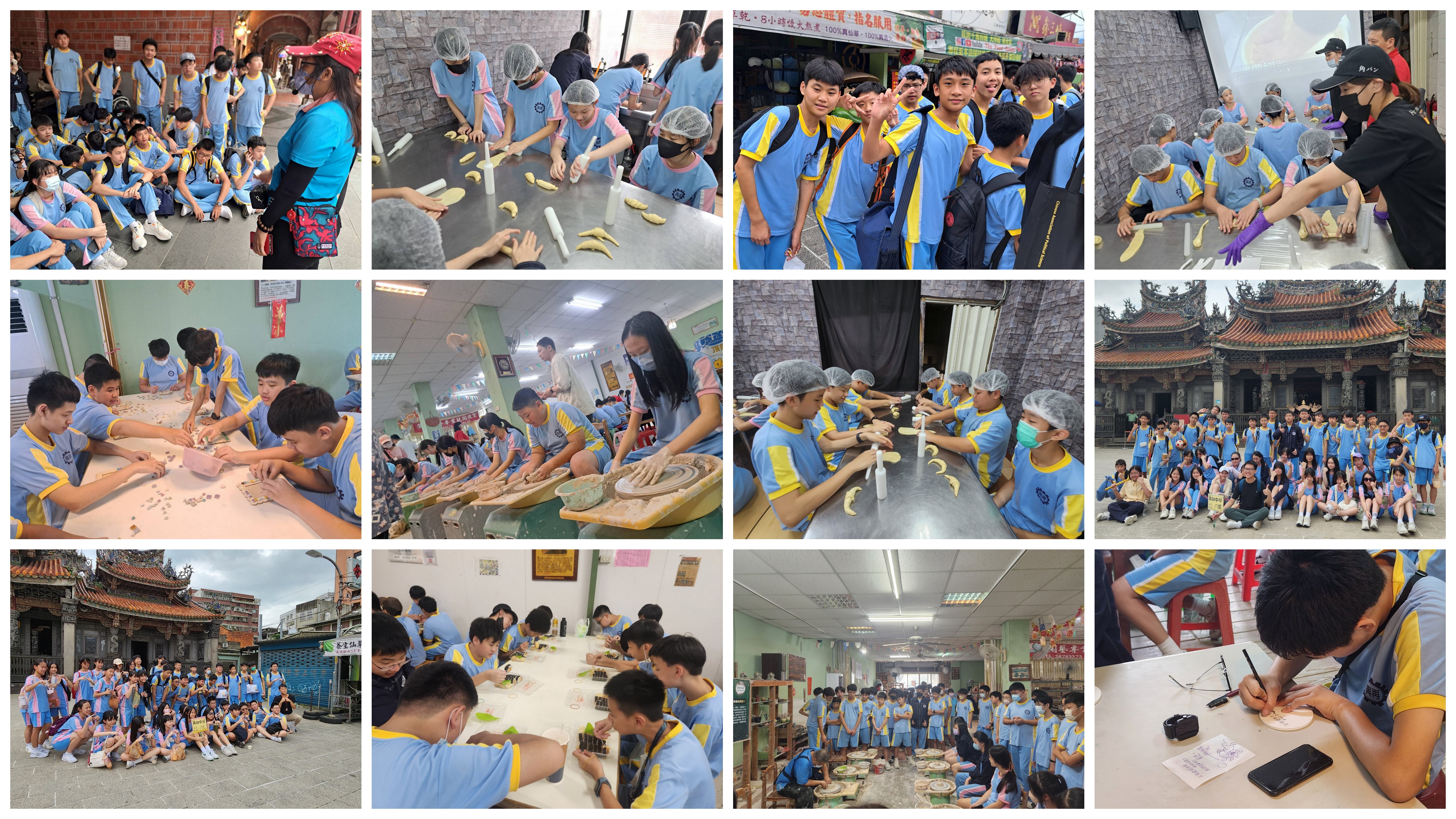 為讓孩子透過團體活動,增進情誼,亦藉此開拓視野,擴大學習領域,以健全其人格發展,學務處於7月31日舉辦國中部八年級校外教學活動,地點為新北市鶯歌與三峽區。本次活動委託鴻禧旅行社承辦,由本校向芳誼主任帶領八年級各班導師、學務處同仁及八年級學生共332位參加活動。活動於7:50確實實施逃生演練後自本校出發,直達目的地。