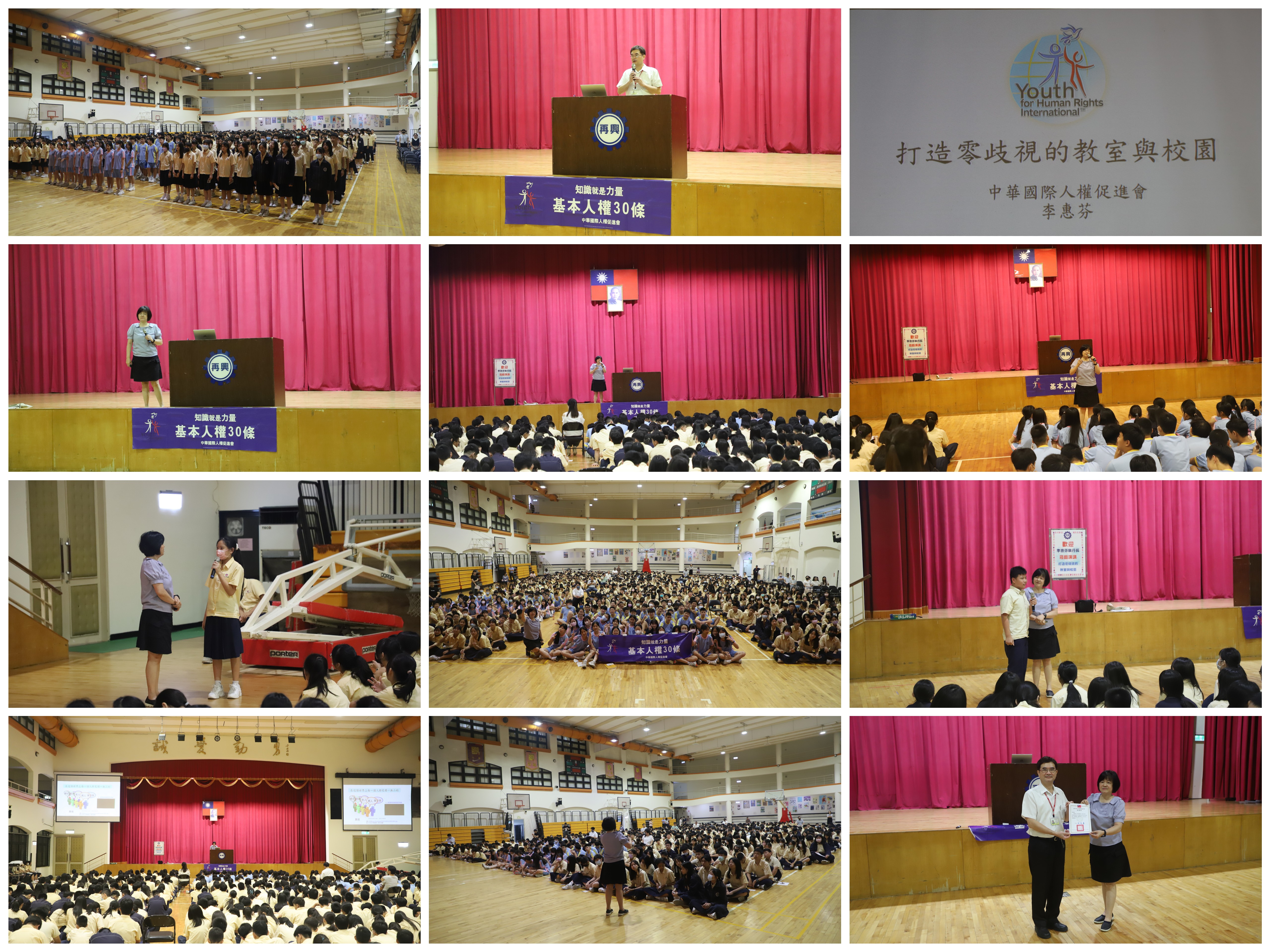 113學年度第一學期第二週國中部週會課於113年9月4日上午第二節知新樓B3體育館進行,本校七、八、九年級同學參加;本次週會邀請李惠芬社團法人中華國際人權促進會 執行長,演講主題【打造零歧視的教室與校園】。首先講師透過人權影片欣賞,及角色扮演等活動,體驗了解人權只有互相尊重彼此的權利,才能創造一個和諧的班級與校園。