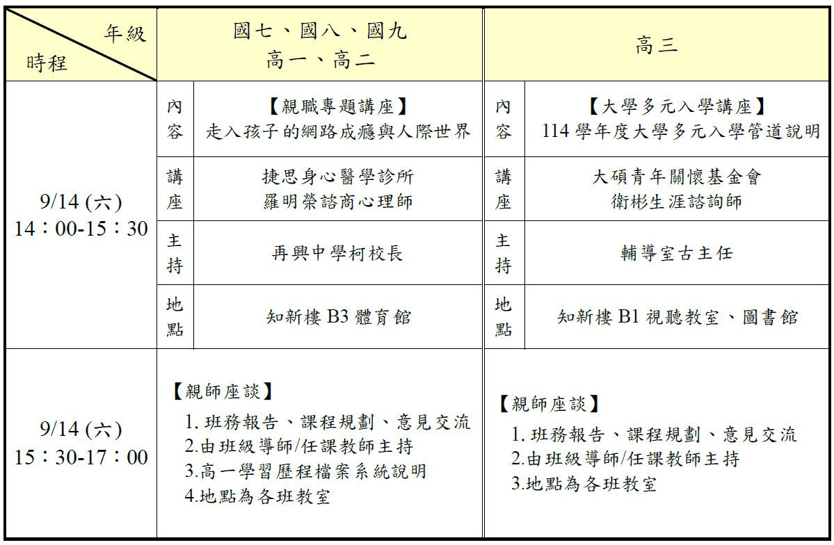 113-1 再興中學學校日相關資訊