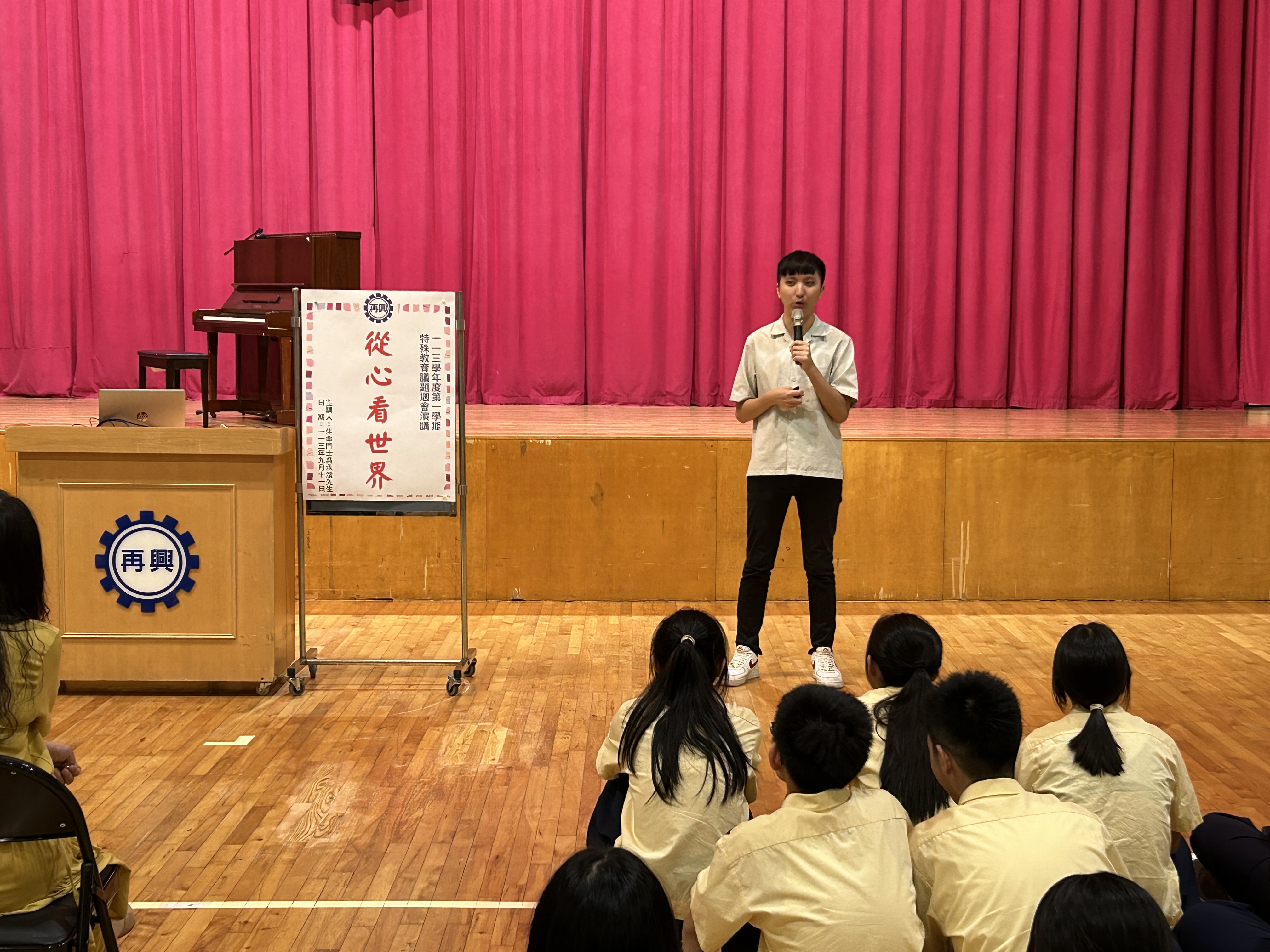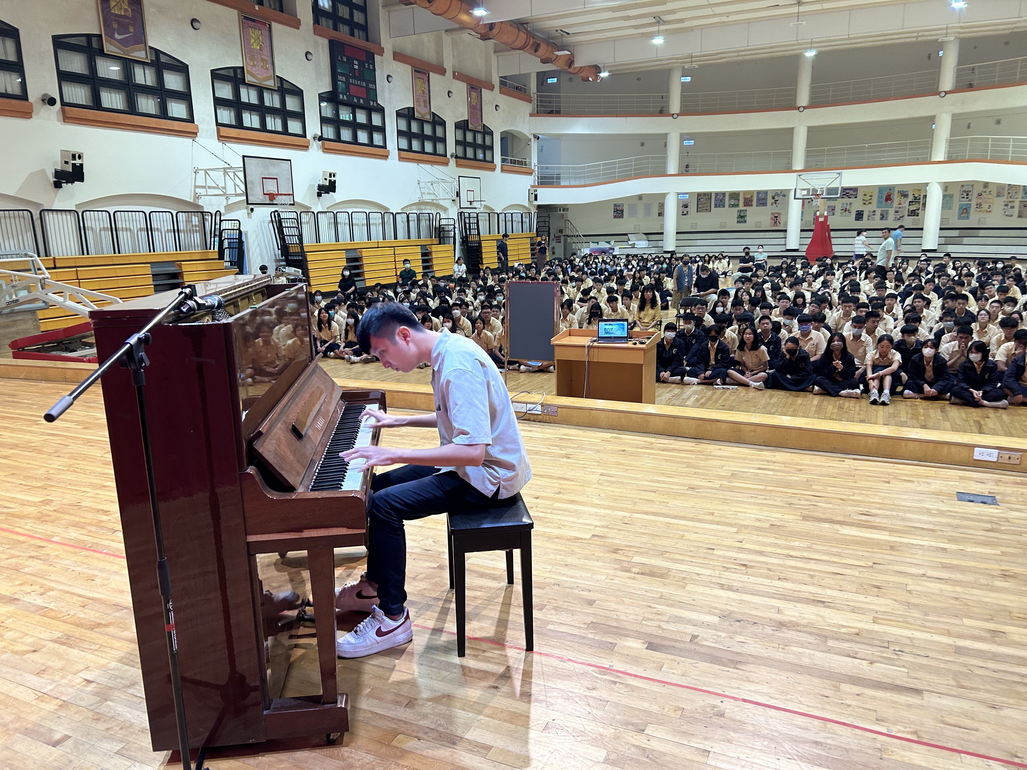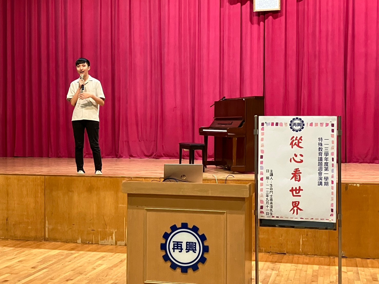 113年9月11日(星期三)輔導室很榮幸的邀請到生命鬥士吳承澐先生蒞臨本校分享精彩的人生經歷。承澐老師14歲時發現患有罕見疾病「Leber氏遺傳性視神經病變」,短短半年雙眼視力從1.0迅速退化到0及0.01,眼前一片霧茫茫。國中發病後,曾經逃避最愛的鋼琴,直到上了高中,有機會再次接觸音樂演奏,才領悟到就算喪失了視力,但還有聽力。靠著對音樂的熱情,從迷惘中站了起來,找回了自己。