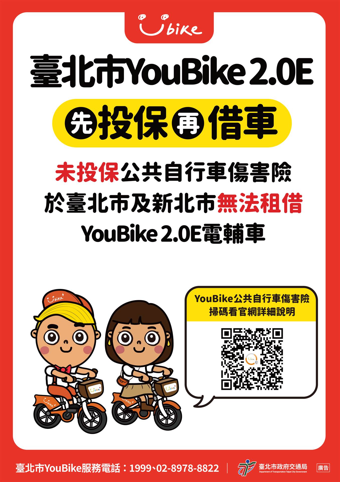 一,為強化宣導於臺北市騎乘公共電動輔助自行車YouBike2.0E 前須先投保公共自行車傷害險.