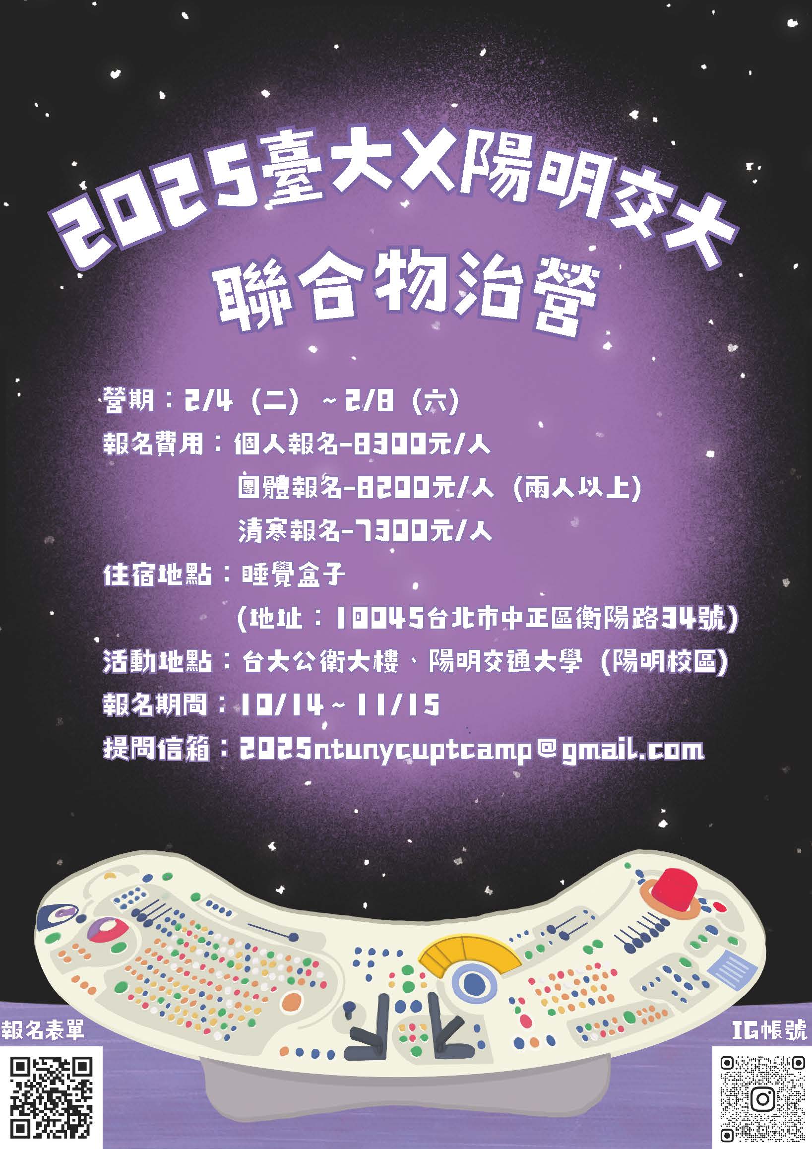 三、營隊詳情及報名資訊請上國立陽明交通大學課外活動輔導組網站查詢