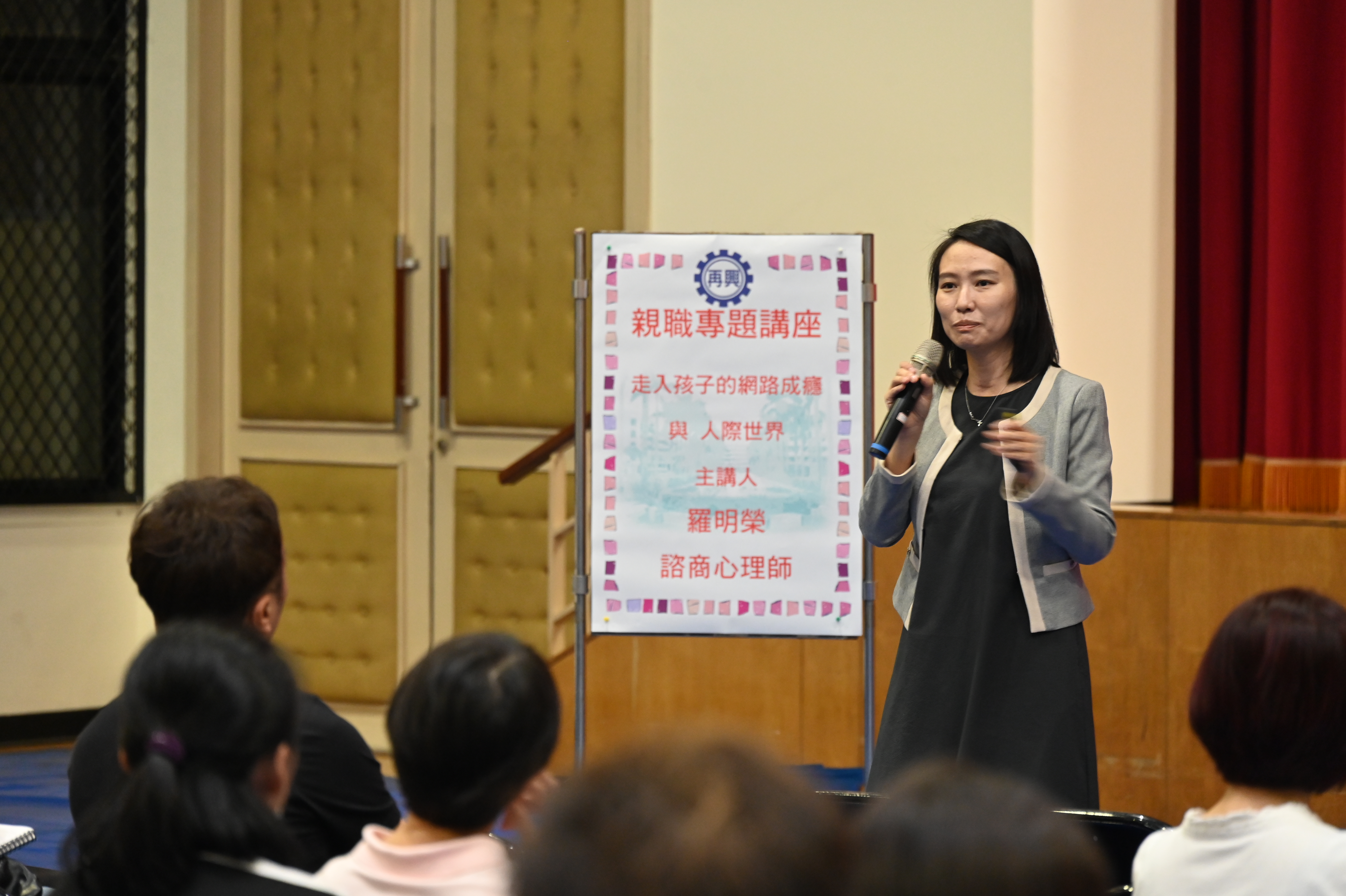 羅心理師首先指出DSM-5目前暫定網路遊戲障礙症之建議的診斷準則為持續和反覆的使用網際網路,經常與其他玩家投入遊戲,導致臨床上重大的損傷或憂慮。接著提醒大家年代不斷在變化,我們要了解現在孩子所處的時代,高科技已經是不可或缺的一部分,與孩子一同前行是非常重要的!