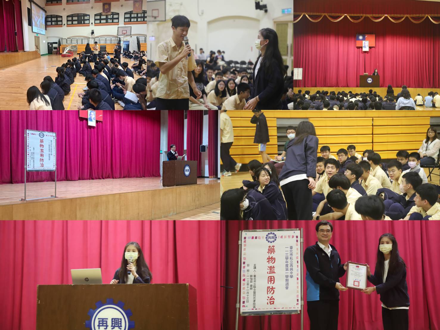 本日11/13(三)週會係113年下半年防制學生藥物濫用反毒教育宣導活動,參加學生為一、二年級學生約541員,此次特別邀請臺北市立聯合醫院松德院區劉怡貝藥師擔任講師。劉藥師以深入淺出的方式讓學生認識毒品的樣態及其危害。並透過實際工作經驗,以活潑的有獎問答,增加學生對反毒知識的了解與提升學習專注度。校長也提供各項數據與教育局指示目標提到,校園反毒刻不容緩,尤其面對新興毒品氾濫充斥,各種毒害誘惑層出不窮,希望建立學生正確觀念。打造健康無毒的校園。