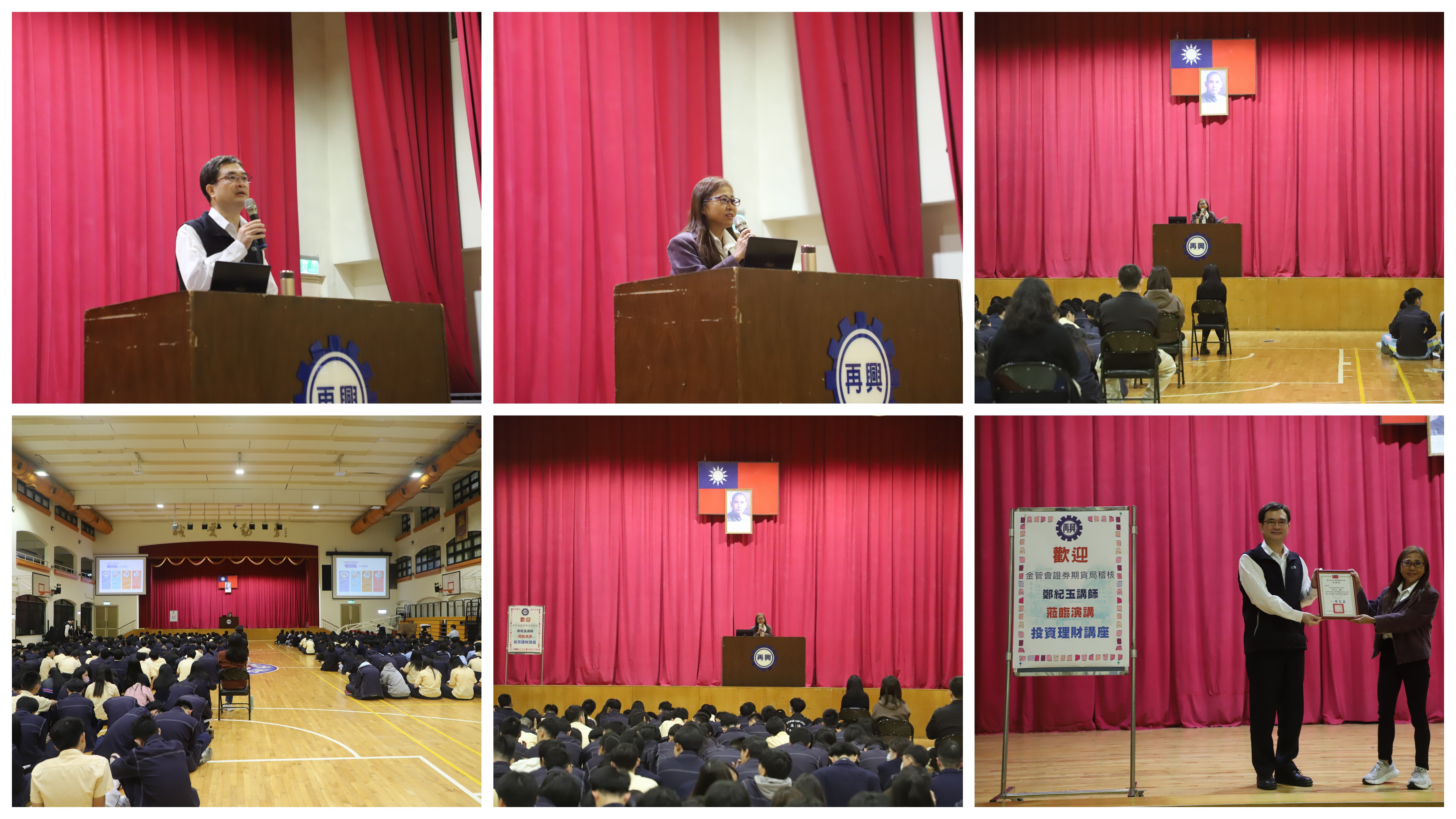 113年12月4日本次週會邀請金管會證券期貨局稽核鄭紀玉講師,演講主題【金融反詐騙及投資股票應該要知道的事】。首先說明金融詐騙層次不窮如何防範?尤其網路資訊氾濫,訊息真假難辨,如何解讀訊息真假?同時播放相關影片讓學生更能了解其中內容,避免影響投資,加上市場行情一日多變如何穩定投資,創造財富?簡短的一節課分享,嘉惠學子良多。
