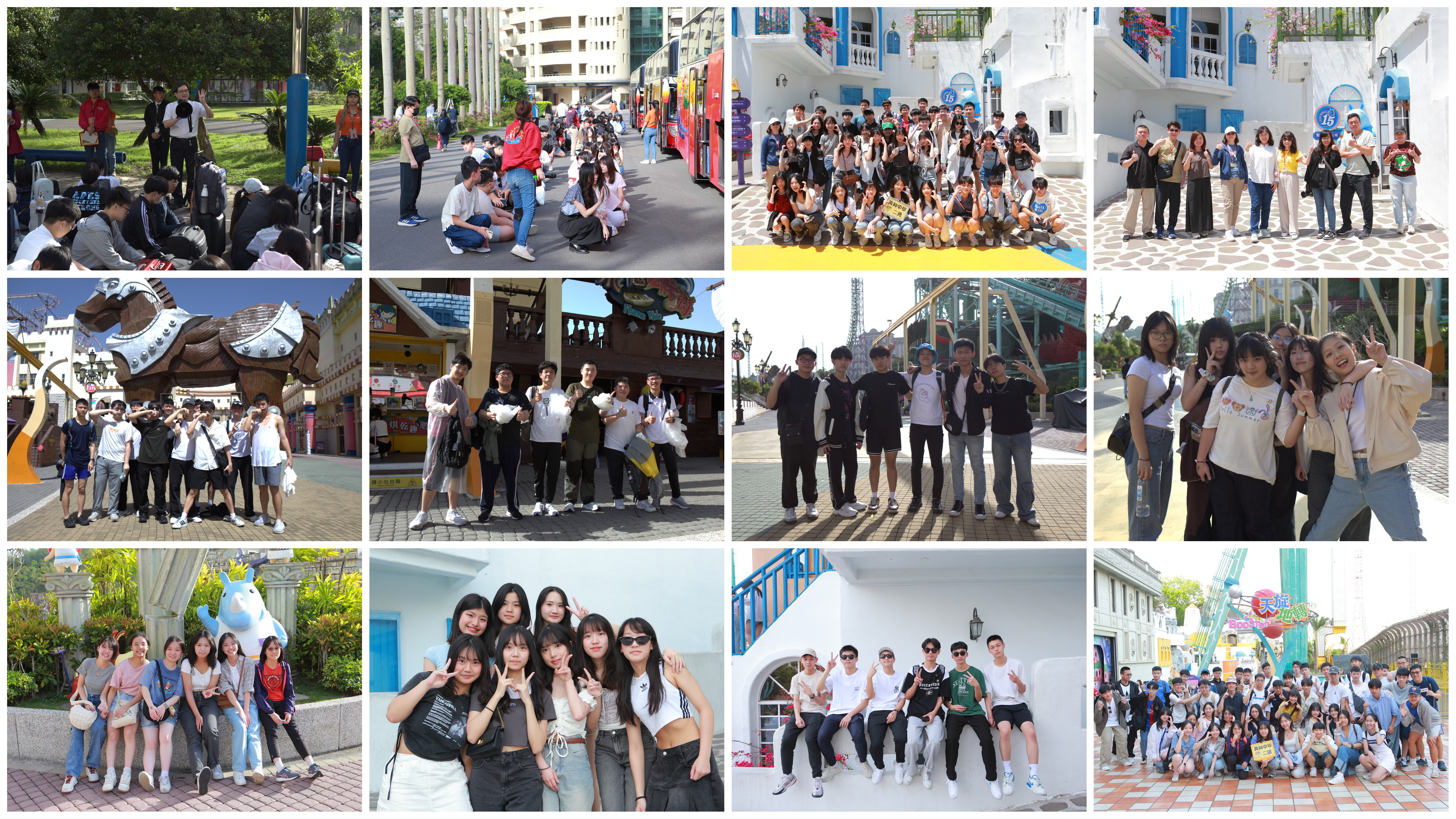 今年度高二教育旅行旅行活動安排於4月15~18日辦理,地點主要包括:義大遊樂世界、駁二藝術特區、墾丁鵝鑾鼻公園、墾丁大街、海生館、貓鼻頭、及劍湖山遊樂世界等地。4月15日上午在雷遠郎主任、高二各班導師及學務處行政同仁率領下,231位高二學生帶著期待雀躍心情踏上旅途。