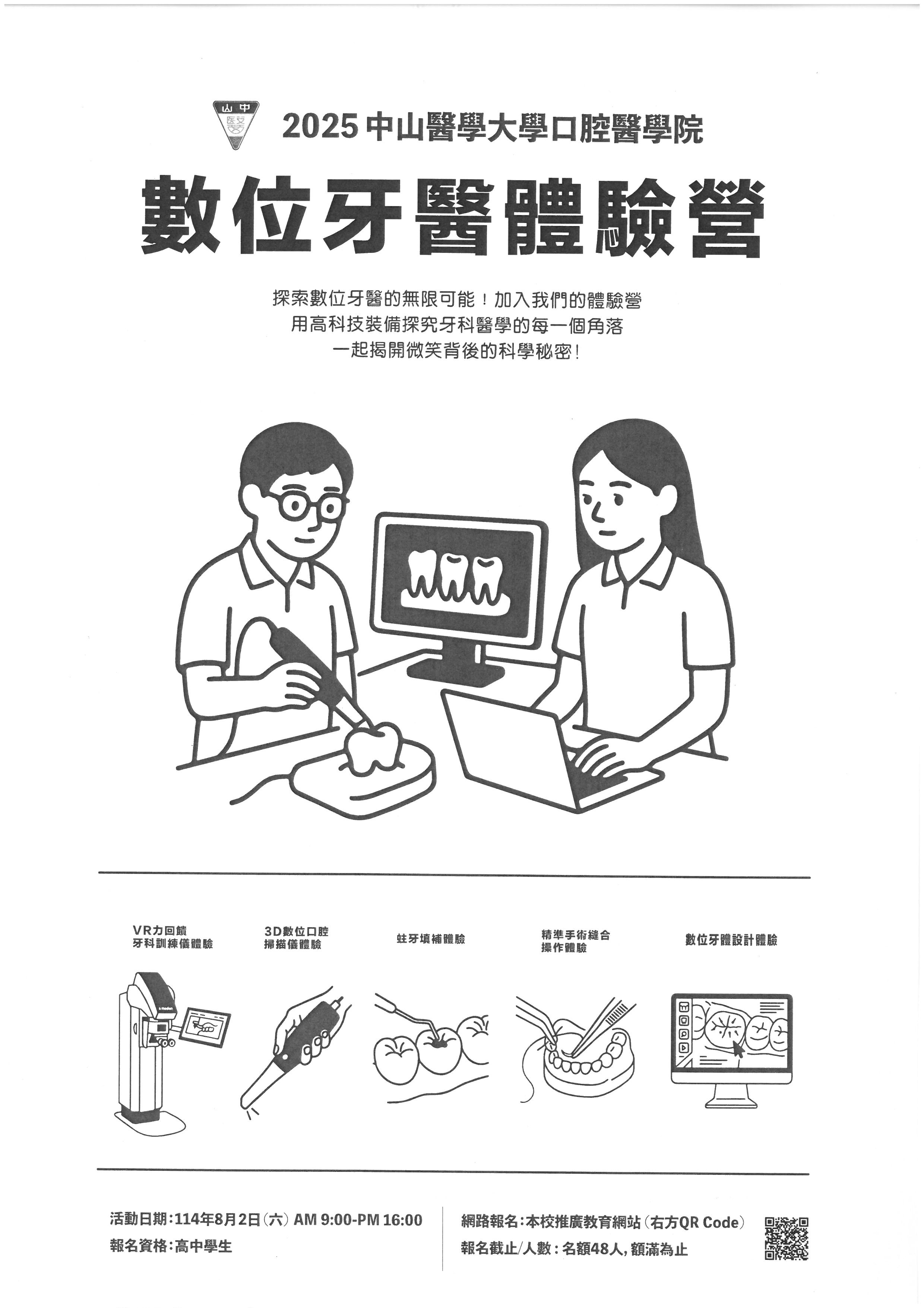 (二)數位牙醫體驗營-2025暑期營訂於114年08月02日(六)舉 行。即日起開始報名。