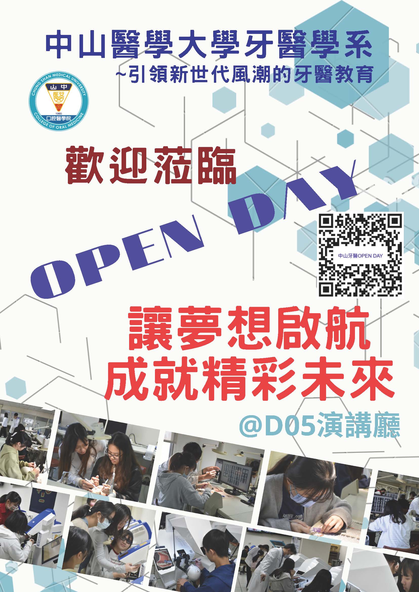 (一)OPEN DAY-活動內容含系所與學涯簡介、創新教學課程與 最先進數位牙科訓練儀實作體驗。