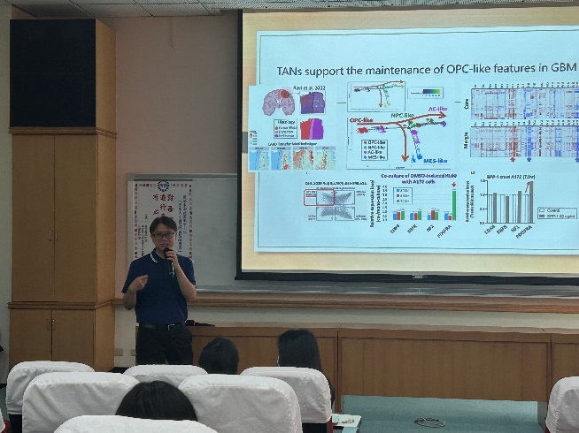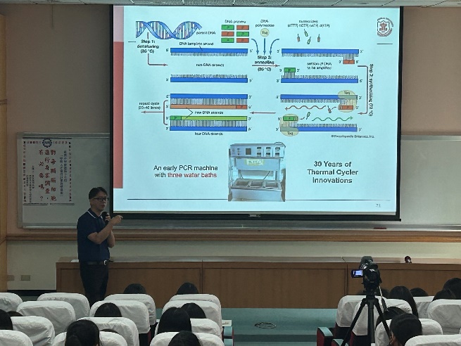 4月30日下午,本校特別邀請了台北醫學大學的莊健盈教授蒞校進行學術人才專題講座,主題為「對每顆細胞進行身家調查,有必要嗎?」。莊教授以生動有趣與互動的講述方式讓我們了解腦癌細胞的研究方法。