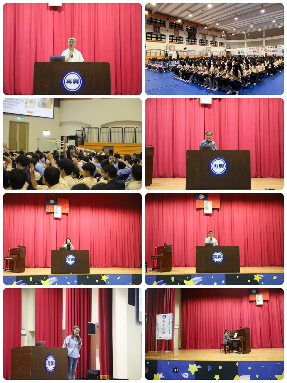 為了讓高一及七年級新生更深入的認識學校師長、了解學習環境以及各項相關規章,加強新進學生對新學習階段之適應能力及增加對學校的認同,學務處特別於8月1日(五)假知新樓B3體育館,舉辦114學年度新生訓練。首先,由教務處陳昭男主任、輔導室李怡蓁組長、總務處陳韋文主任、學務處向芳誼主任和鄒靜芬組長分別介紹各處室職掌及業務,能提供的協助,並邀請音樂科劉姵希老師教唱國歌及再興校歌。最後,由新任的張東勇校長給予新生勉勵。校長詳盡的介紹了再興的歷史和優勢,期許孩子們能夠善用再興的優良學習環境,精進自己的成長,追求卓越、活出精彩,站上國際舞臺,再勵不息,興人利己。本次新生訓練活動內容詳實,相信對高一及國七新生們適應再興學校生活大有助益,盡速融入再興黌園。