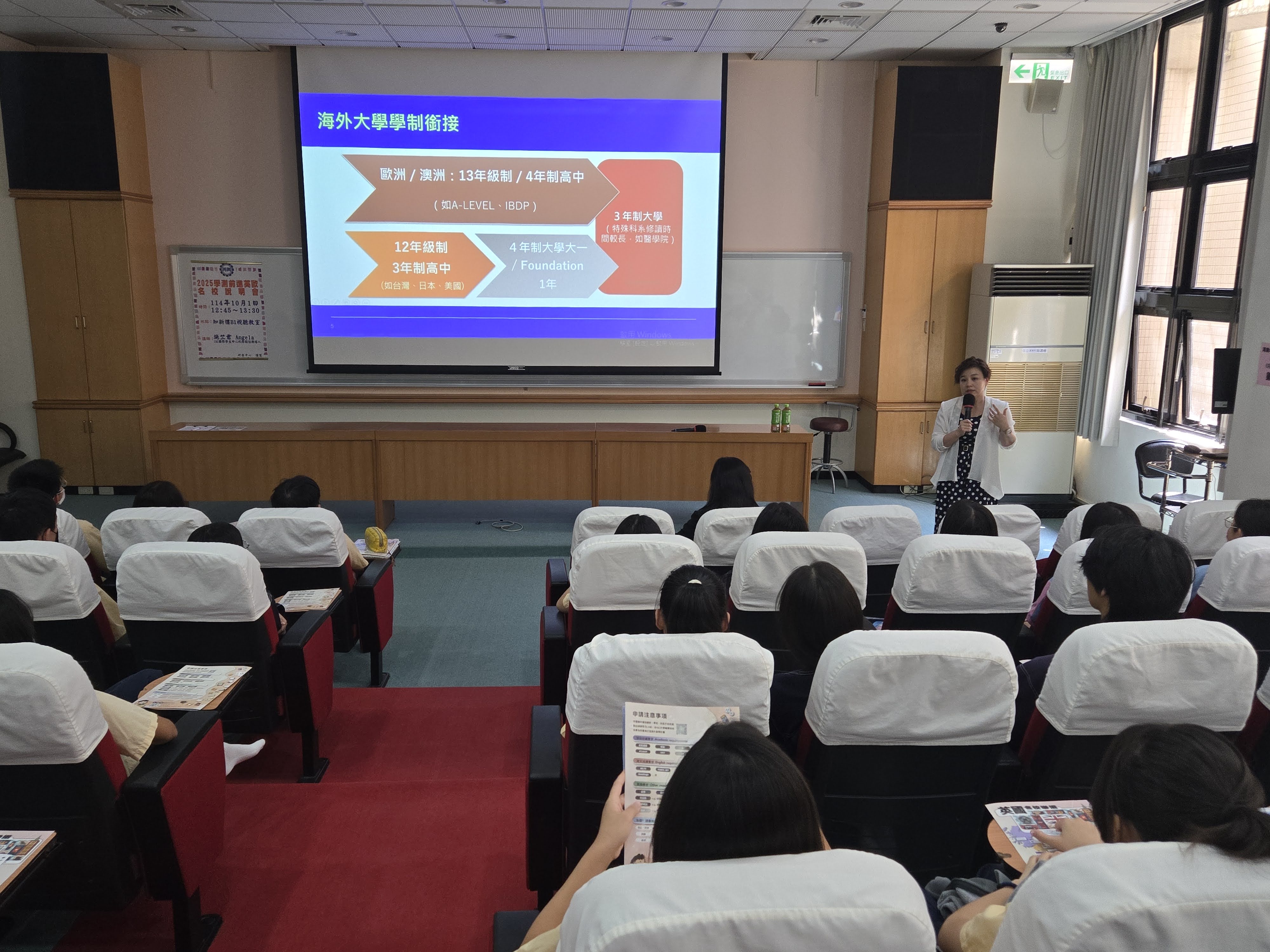本校10月1日舉辦學測前進英歐名校說明會,邀請ISC國際學生中心校際關係聯絡人 施竺君Angela說明申請英國與歐洲各大學的流程與相關資訊。本場說明會共有42位高中部學生參加,全程分為四個部分:赴歐就學須具備的基本認知、申請條件與流程、歐洲名校特色簡介與招生要求、以及學生提問時間。