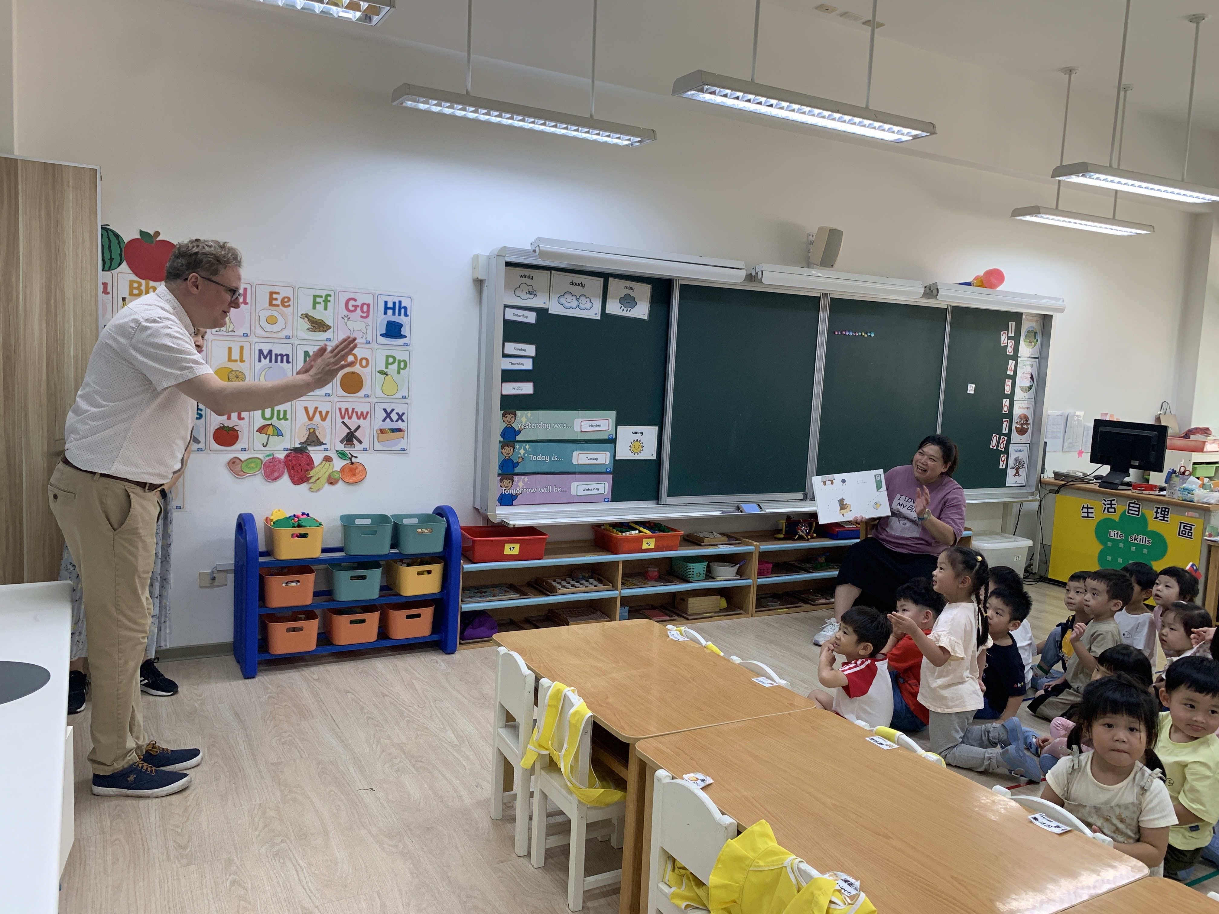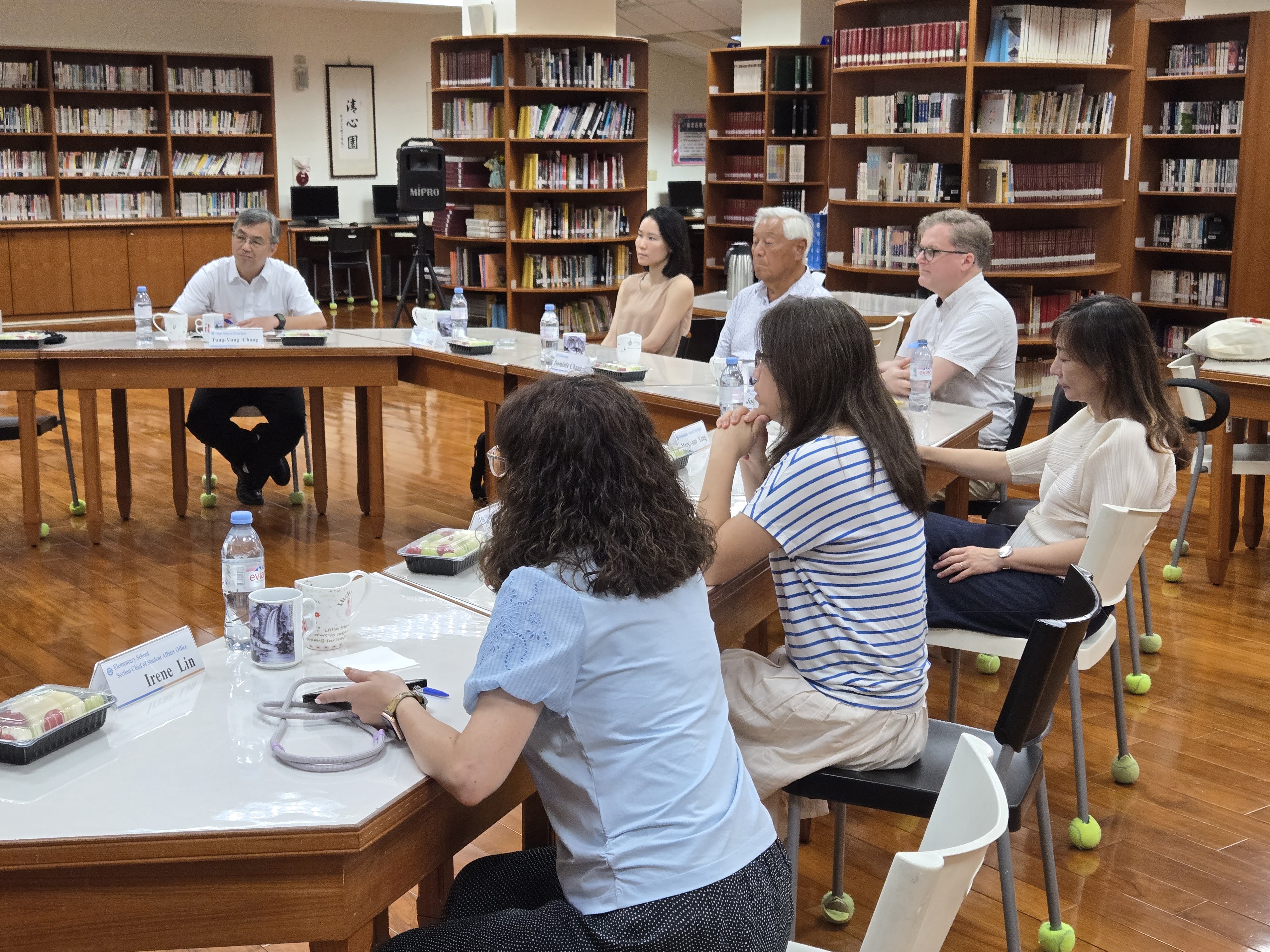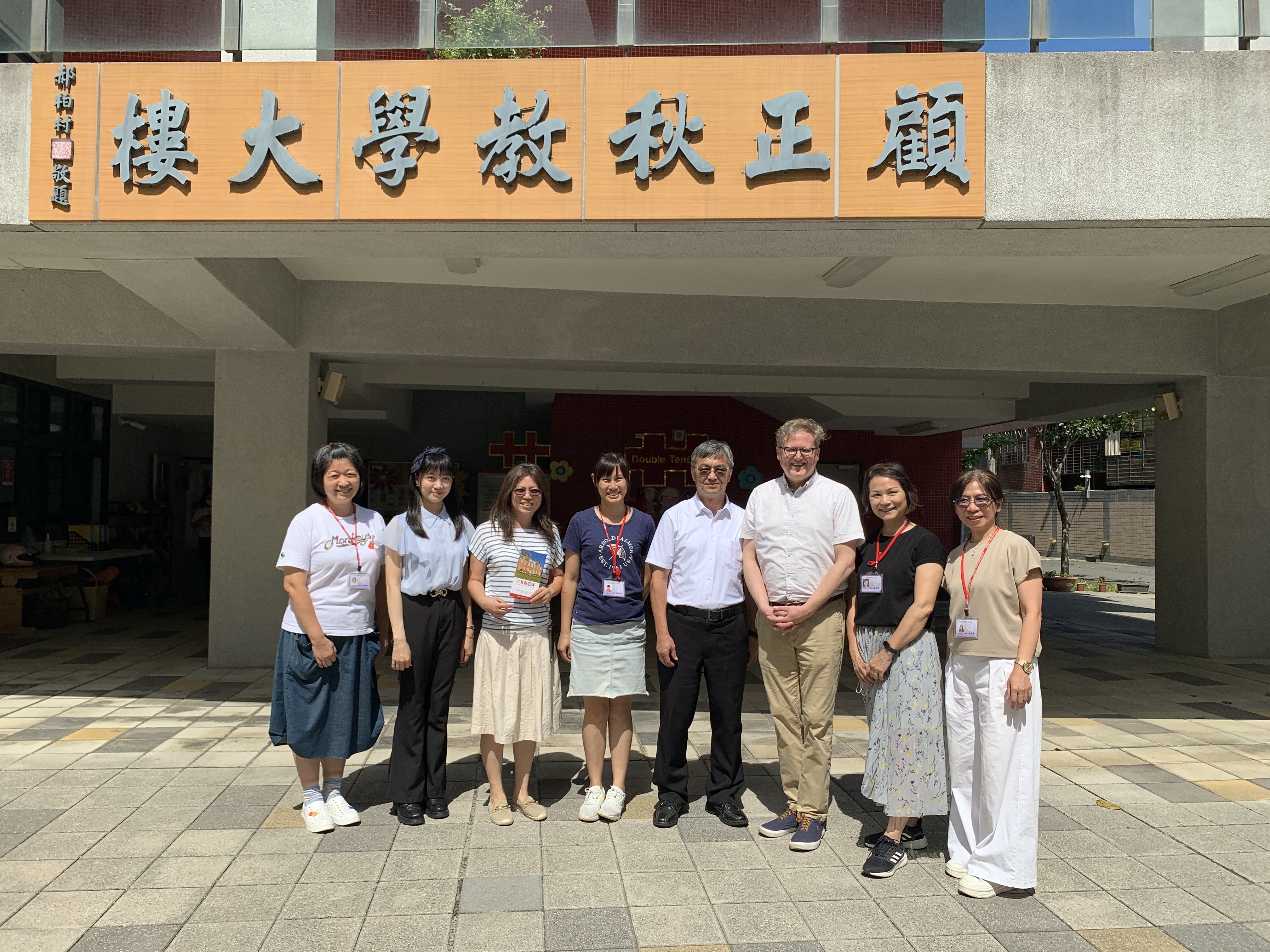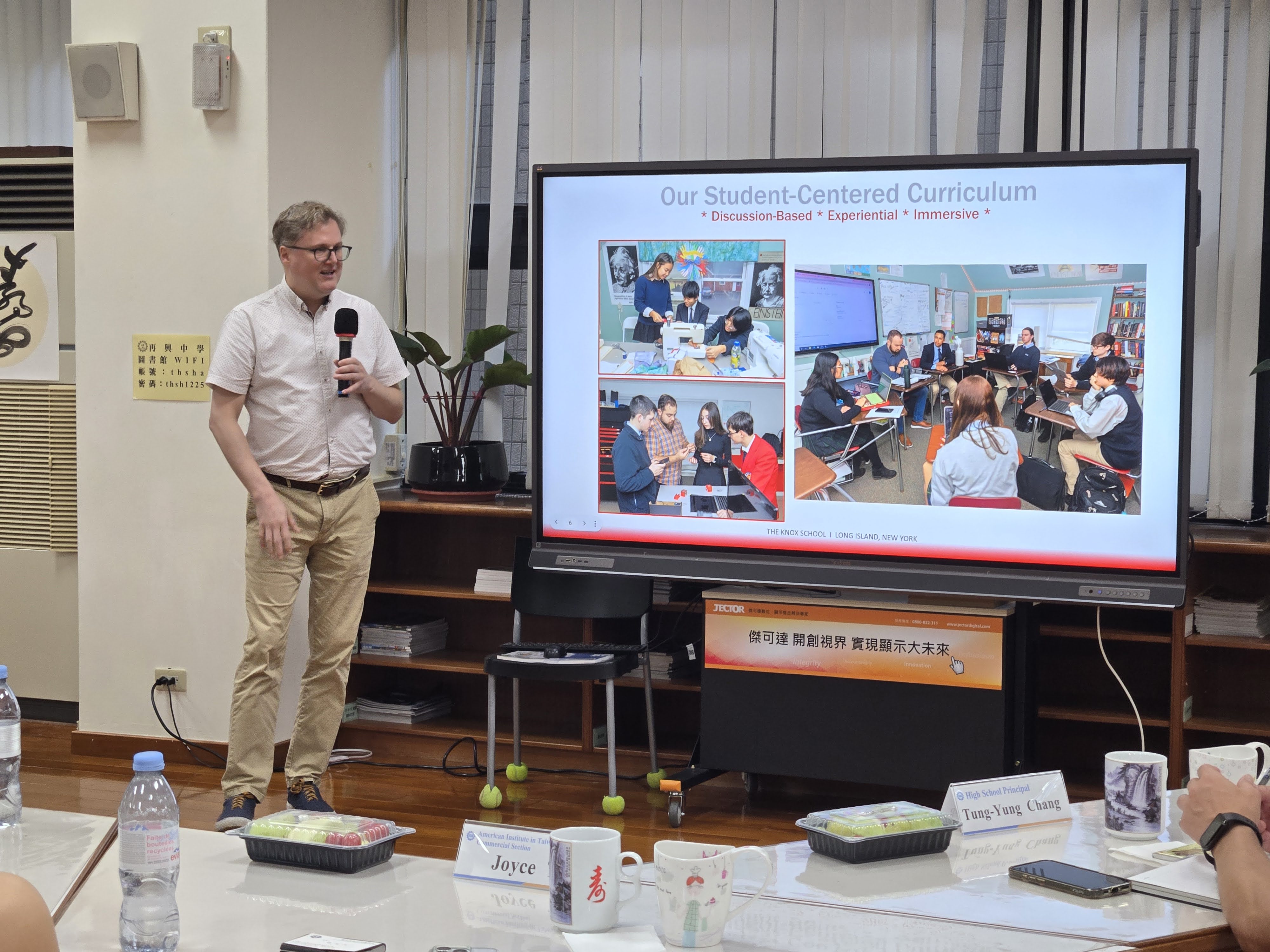 114-1009 美國紐約諾克斯學校代表蒞臨參訪 114年10月9日上午,美國紐約諾克斯學校(the Knox School)招生主任Joshua Pelkey蒞臨再興學校參訪,諾克斯學校是一所位於紐約長島的私立寄宿高中,成立超過40年,校園環境遼闊優美,甚至設有馬場及牧場,為6~12年級學生提供多元的中學及大學預修課程,以及豐富的體育及課外活動。 當天由張光正董事長帶領再興中小學團隊接待Joshua,與會師長包含張東勇校長、楊珩校長、李秉容主任、葉晶瑩主任及林雅鳳組長,Joshua抵達後,先到中學圖書館欣賞朱秀榮校長的文物,包含水墨畫作、京劇戲服等,並觀賞再興學校簡介影片,聆聽中學課程介紹簡報,對再興的環境、特色課程及活動有初步的認識。Joshua也詳細介紹諾克斯學校的校舍、歷史、課程安排及輔導規劃,該校旨在協助學生探索自我,進而找到未來的科系及職涯方向,因此非常重視五育培養及課程彈性,兩校在教育理念及方向上有諸多共同點,師長們也在簡報過程中熱絡的提問對談。 接著參觀校園,第一站前往幼兒園,蘇瑞鴛園長及老師們熱情的迎接,帶Joshua到教室裡和活潑的孩子們互動,用簡單的英文對話寒暄,第二站抵達小學圖書館,感受明亮溫馨的閱讀空間及互動式SEL特展,最後回到中學圖書館享用午餐,兩校師長相談甚歡,也期盼接下來能夠和諾克斯學校有近一步合作的機會。