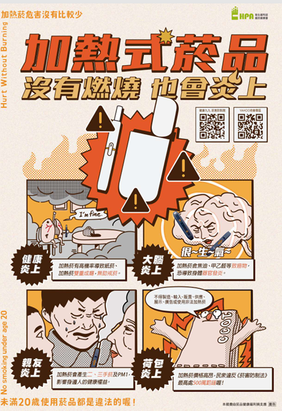 菸害防制法於112年3月22日修正施行,依第15條規定,全 面禁止電子煙等類菸品,並嚴格管制符合菸品定義之新型 態菸草產品(包含加熱菸)。所有菸草產品皆有害,不論 是使用紙菸或加熱菸,都會產生相似的有毒化學物質,請 強化青少年菸害 防制教育宣導。