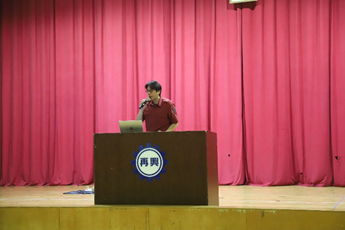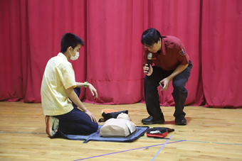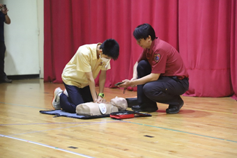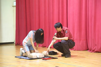 本次講座特別邀請臺北市消防局第一大隊寶橋分隊的陳榮豪先生蒞校,講解防火知識及面對火災的應變要領,以及示範CPR+AED的操作步驟。