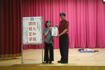 講師提醒同學們,安全是自己的責任,火災瞬息萬變,平時要有危機意識,多瞭解消防安全常識及逃生避難方法。避免在室內堆放過多雜物影響逃生、電器產品周邊不放置可燃物、電線不綑綁、使用延長線不超載、不潮濕汙損擦頭。進入陌生場所時,應留意安全門、梯位置,熟悉逃生路徑,並注意有無兩個不同逃生方向出口。認識平時居住環境或辦公處所之消防設施及逃生避難設備,事前準備好防災包,擬妥逃生避難計畫並預習,狀況發生時,便能從容應付,順利逃生。最後,講師邀請同學上台示範CPR與AED的操作步驟,平時多一分演練,緊急時就能搶救一個寶貴的生命。
