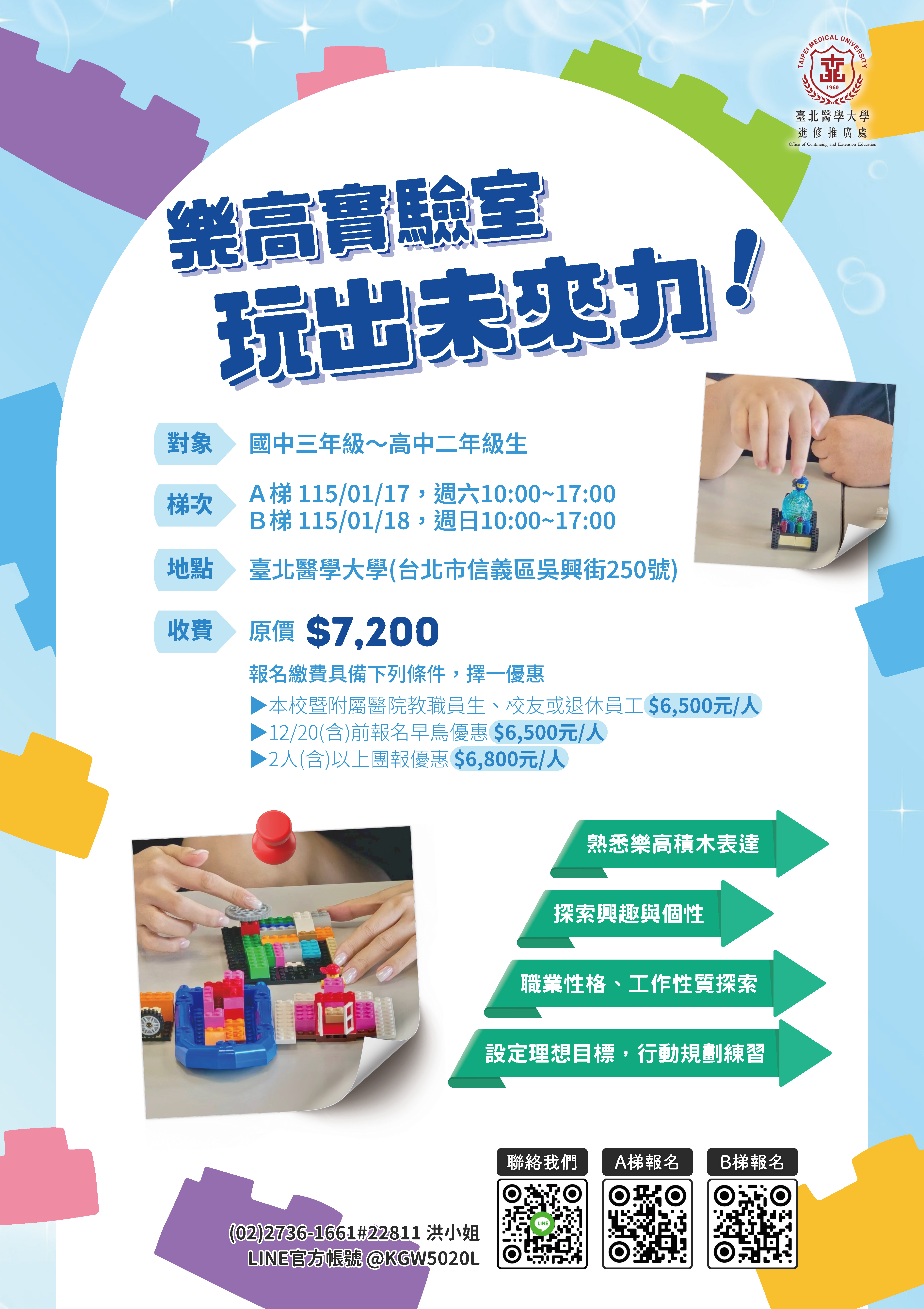 一、本校為鼓勵高中學子於寒假期間參與多元學習,將於115年1月17日至2月10日辦理【全國青少年高中寒假營隊】系列課程。課程結合理論與實作,由本校專業教師與附屬醫院專科醫師親自授課,並由學長姐全程陪伴,協助學生探索醫學領域、拓展視野。