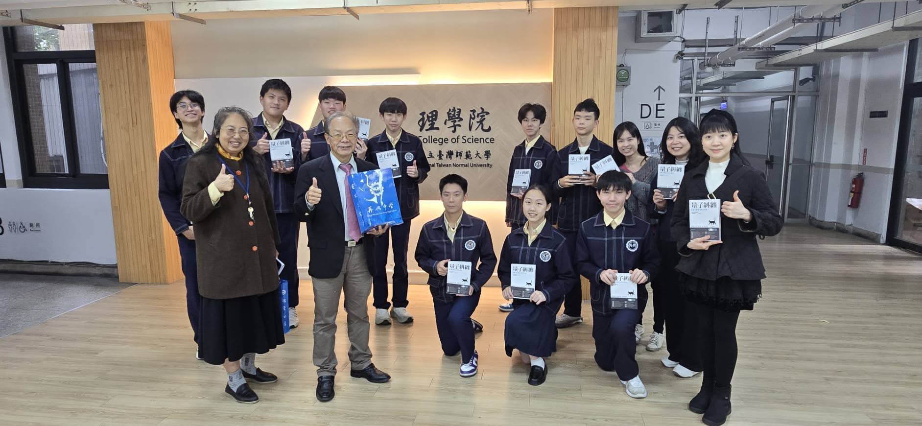 為深化奈米科技課程的學習內容,本校於12月4日(四)安排9位高二修課學生參訪臺灣師範大學物理系實驗室。當日由李秉容主任、熊欣怡及彭欣鈴老師帶隊,在物理系助教白芷瑞、高有愛的協助下,進到物理系文薈廳。首先,由傅祖怡副院長熱情致詞,歡迎全體師生,隨後,蔡志申教授以生動案例闡釋物理之美,並邀請學生上前互動,現場氣氛熱烈;最後,由臺師大理學院副院長、同時也是《量子糾纏》譯者的方偉達教授,代表院方贈書予再興師生,方副院長期許學子們透過閱讀持續精進,更親切地與學生逐一合影留念。