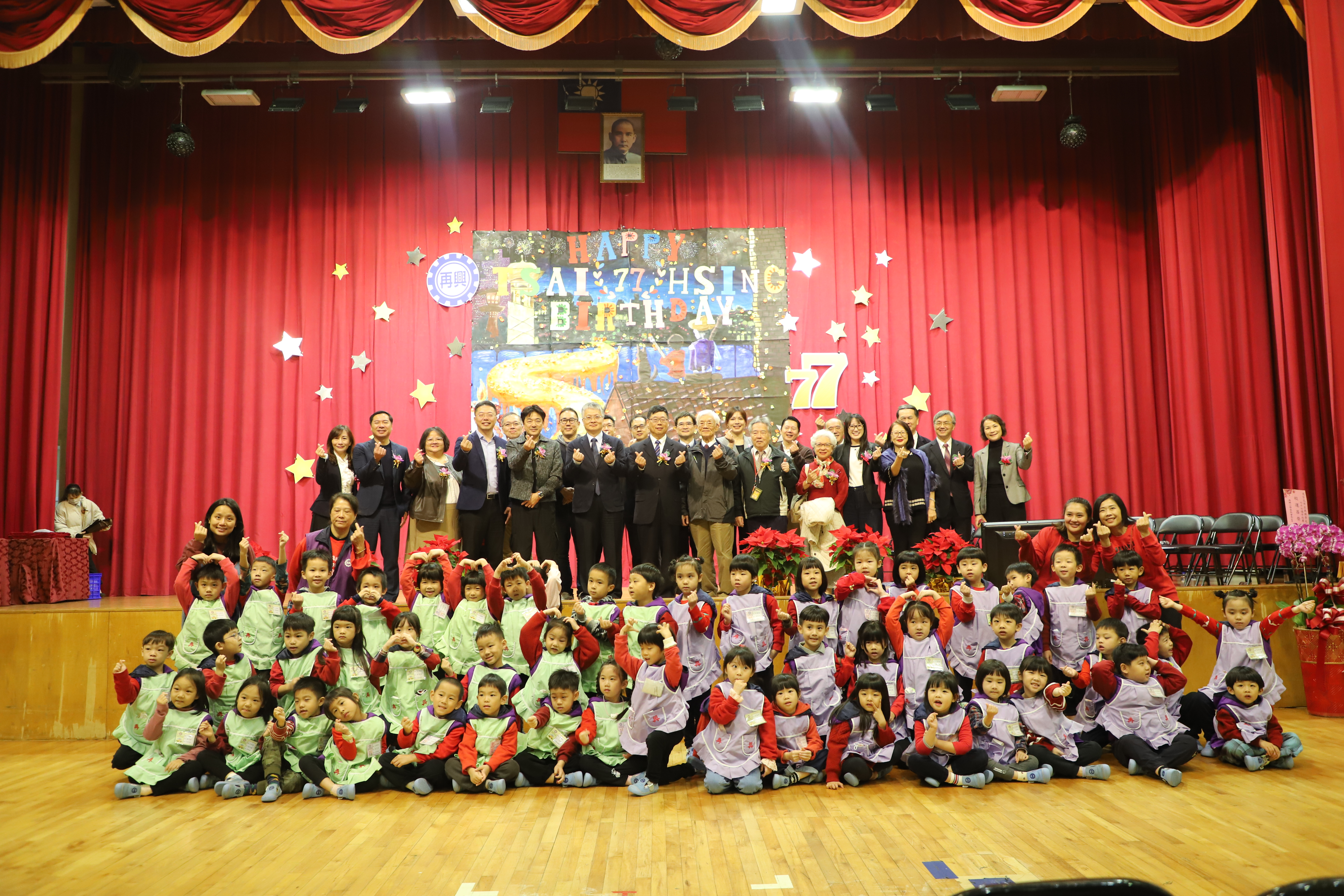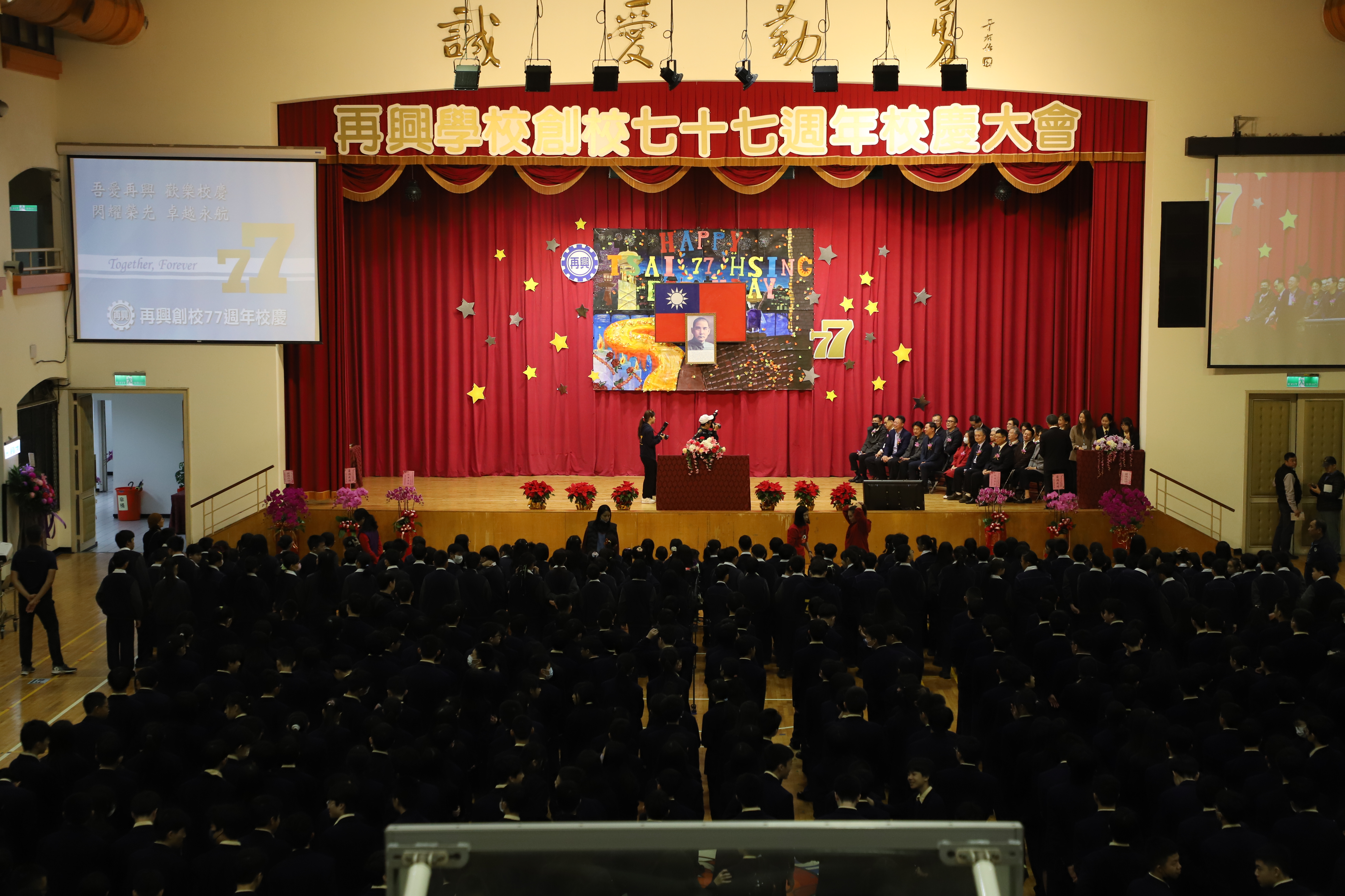 再興學校 77 週年校慶盛大登場:親師生齊聚,展現卓越教育成果 臺北市私立再興學校於今(25)日舉行創校 77 週年慶祝大會。典禮由董事會郝海晏董事主持,帶領中學張東勇校長、小學楊珩校長及幼兒園蘇瑞鴛園長,與各界貴賓、家長及校友共同見證再興學校跨越超過一甲子的光輝歲月。 產官學界貴賓雲集,共賀再興 77 載 今日大會貴賓陣容堅強,展現再興強大的校友凝聚力與深厚的社會聯繫。出席嘉賓包括教育部劉國偉次長(傑出校友)、東吳大學林利芝教授(傑出校友)、立法院羅智強委員,臺北市議會鍾沛君議員、耿葳議員(傑出校友)以及多位國小校長與家長會代表。劉國偉次長與多位議員於致詞中,除了表達對母校的感念,也對再興長期以來堅持卓越、全人教育的辦學精神給予高度肯定。 捷報頻傳:文武雙全的卓越表現 典禮中的「獻獎」環節成為全場焦點,呈現了再興學子在 114 年度傲視群倫的競賽成績: 小學部:展現強大的多元發展實力,連續七年蟬聯臺北市推動閱讀績優特優、連續十一年榮獲「微夢想的旅行」特優。此外,在全國啦啦隊錦標賽、教育盃高爾夫錦標賽、南區運動會及溫世仁作文比賽中,皆摘下多項團體冠軍與首獎。 中學部: 在交通安全、學術與藝能領域同樣亮眼。不僅榮獲臺北市金輪獎優等,在國中家政學藝競賽、五項藝術舞蹈比賽、教育盃高爾夫及民俗體育錦標賽中,均獲得團體組第一名或特優的佳績。 個人優異表現,點亮校慶光芒 除了團體獎項,個人表現亦極其突出。從硬筆書法、語文競賽、相聲比賽到田徑場上的破大會紀錄,再興師生展現了深厚底蘊。值得一提的是,謝安之、謝恆之、謝悅之三姐弟的作品更榮獲「2025 年第 39 屆日本東京國際發明展金牌獎」,顯見學校在推動創新發明教育上的成功。 精彩活動續航,歡樂校園氛圍 慶祝大會在全體齊聲高唱校歌中圓滿完成。典禮結束後,球場有充滿創意與活力的園遊會攤位,校園隨即轉為熱鬧的嘉年華園遊會模式。 下午在 B3 體育館舉行了精彩萬分的「國中部班際帶動唱」與「高中部班際啦啦隊」比賽。小學與幼兒園亦安排了豐富的系列活動,許多嘉賓、校友共同參與這場屬於全體「再興人」的年度盛會,再興78,明年見。