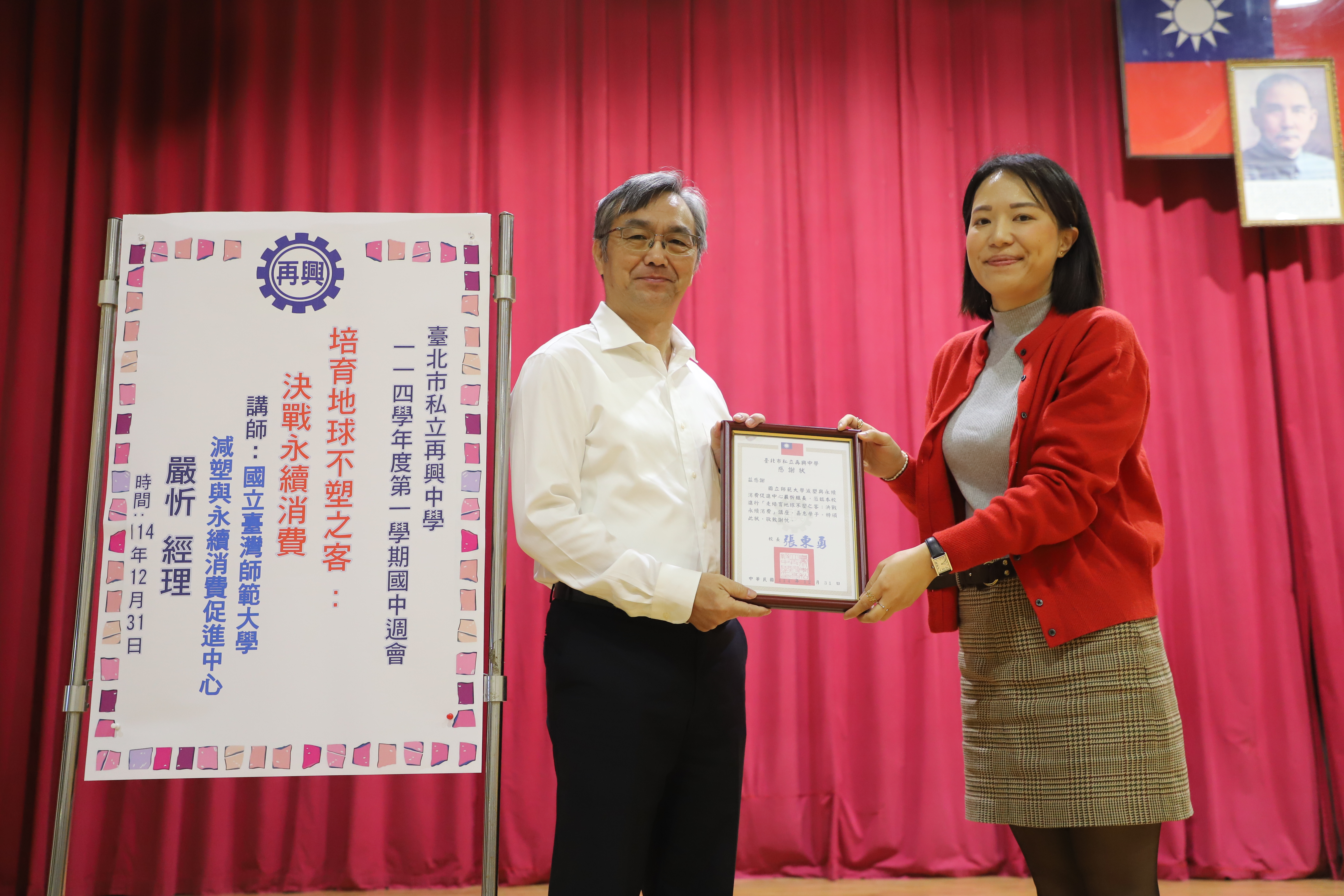從減塑到永續:台師大減塑與永續消費促進中心組長前進再興中學,用數據揭示環境危機與行動轉機 為落實環保教育並推動校園永續生活,再興中學日前特別邀請「國立臺灣師範大學減塑與永續消費促進中心」組長謝忻蒞校演講。此次講座針對國中生量身打造,結合嚴峻的環境數據與豐富實務案例,引導學生深入理解塑膠污染現狀,並學習如何在日常生活中實踐減塑,培養具備全球責任感的「永續青年」。 警世數據:揭露全球塑膠危機 組長在簡報中引用多項具體數據,向師生展示了當前環境的緊迫性: 翻轉消費習慣,共創無塑明天 數據的呈現是為了喚醒改變,「永續消費」是終極目標。建立學生透過「減少使用」而非僅依賴「回收」的觀念,讓消費習慣達成環境減塑。學生透過這次演講,不僅體認到冰冷數據背後的環境使命,更深刻理解到:每一個微小的日常消費選擇,都是守護地球環境的關鍵行動。