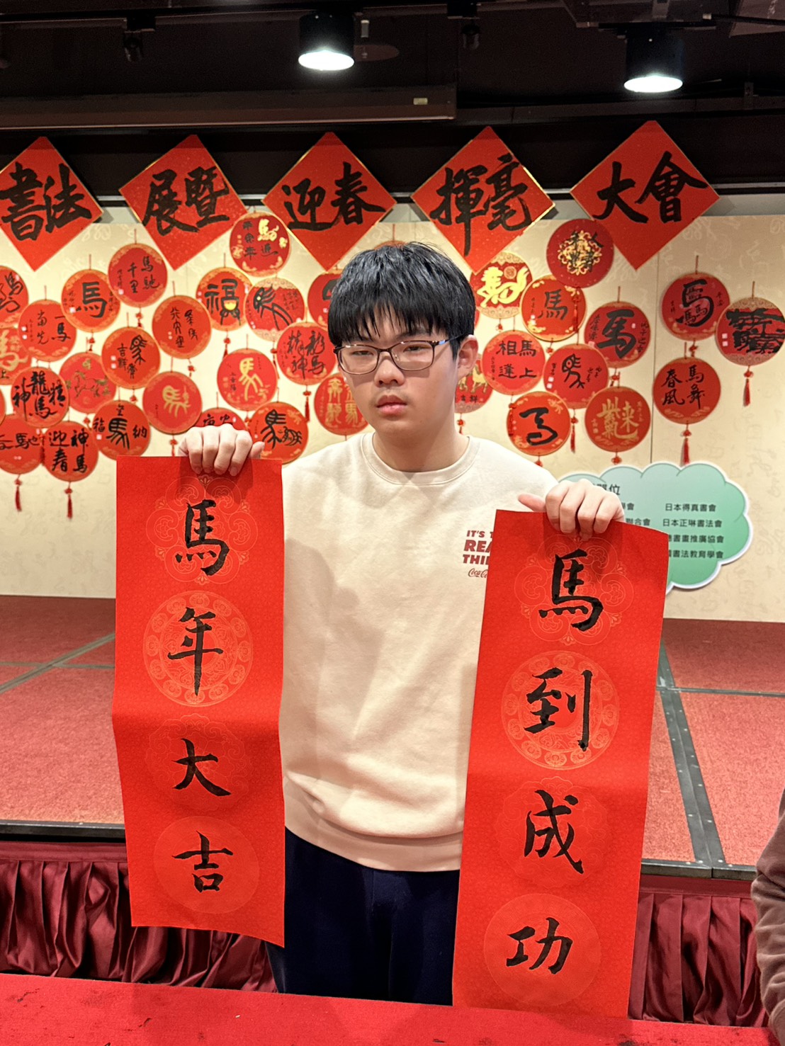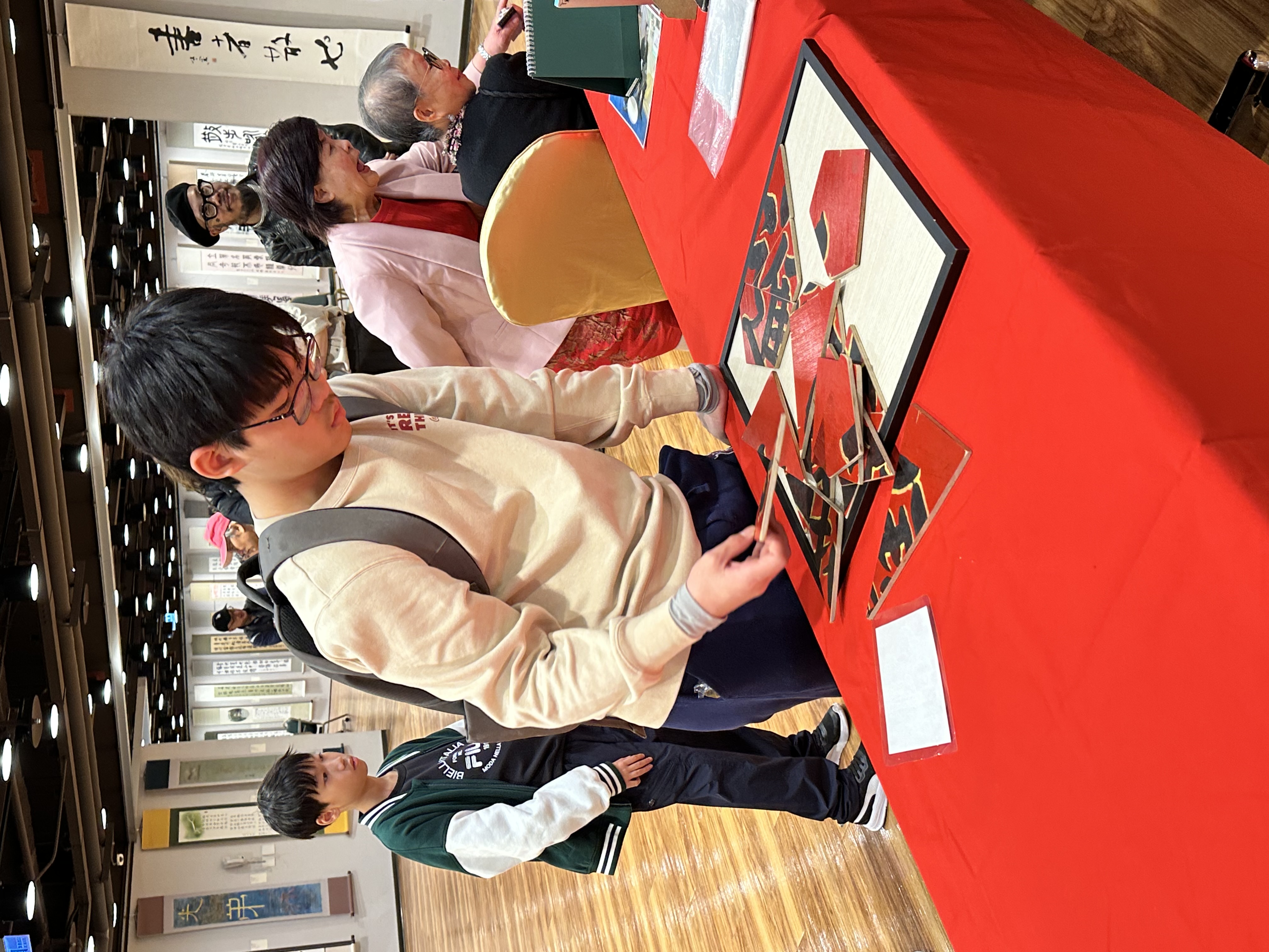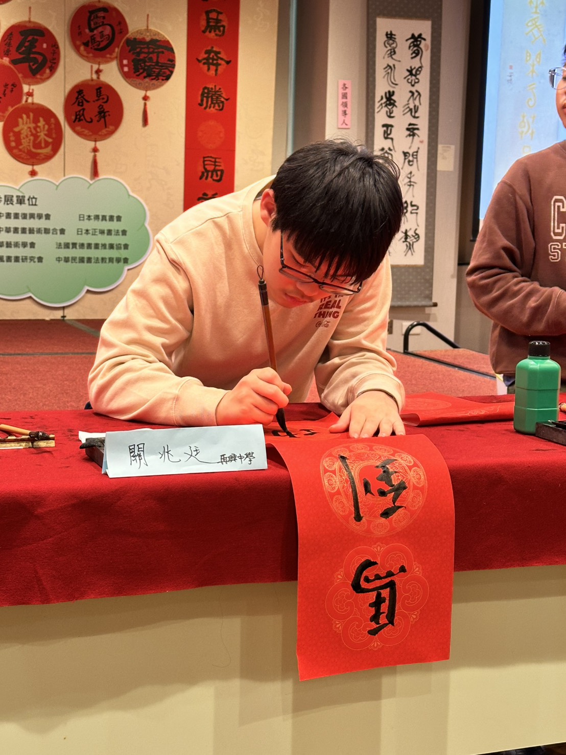 本校七年愛班關兆廷同學平時勤於習字,於 3 月 8 日代表學校參與由臺北市教育局與中華民國書法教育學會共同主辦的「2026年臺北市國際書法展暨迎春揮毫大會」。這項傳承 40 年的書法界年度盛事假張榮發基金會大樓盛大舉行,旨在弘揚傳統文化、落實書法教育,並拓展國際藝術交流。 大會以「國際書法展」與「現場揮毫」為兩大主軸,現場墨香四溢。當日不僅邀請臺灣、香港、韓國等國內外名家,更匯聚了在全國或全市比賽屢獲佳績的各校學子同台揮毫。關同學能有幸與前輩大師及優秀同儕齊聚觀摩、切磋書藝,實為一次極為寶貴且難得的學習歷程。 除了大師與學子的動態揮毫外,場內不僅展示了豐富的國內外名家作品,更精心規劃「組合字拼圖」、「速寫剪影」及「水寫體驗」等互動遊戲,讓參觀民眾能以寓教於樂的方式親近書法藝術。