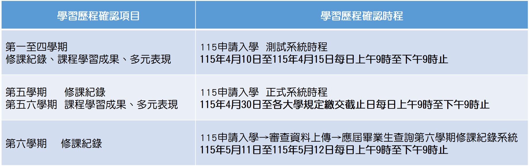 二、一般大學學習歷程資料確認日程說明: